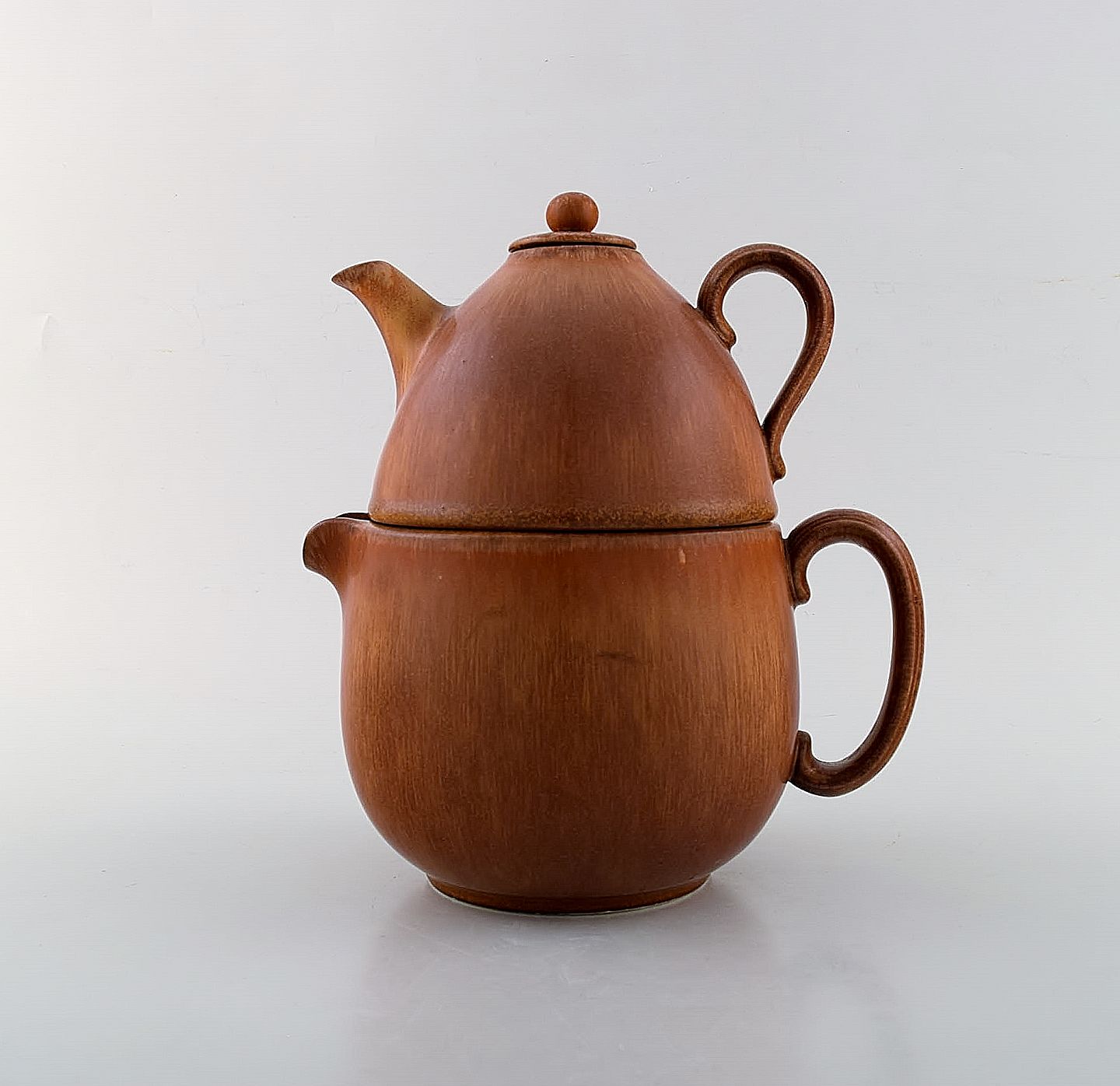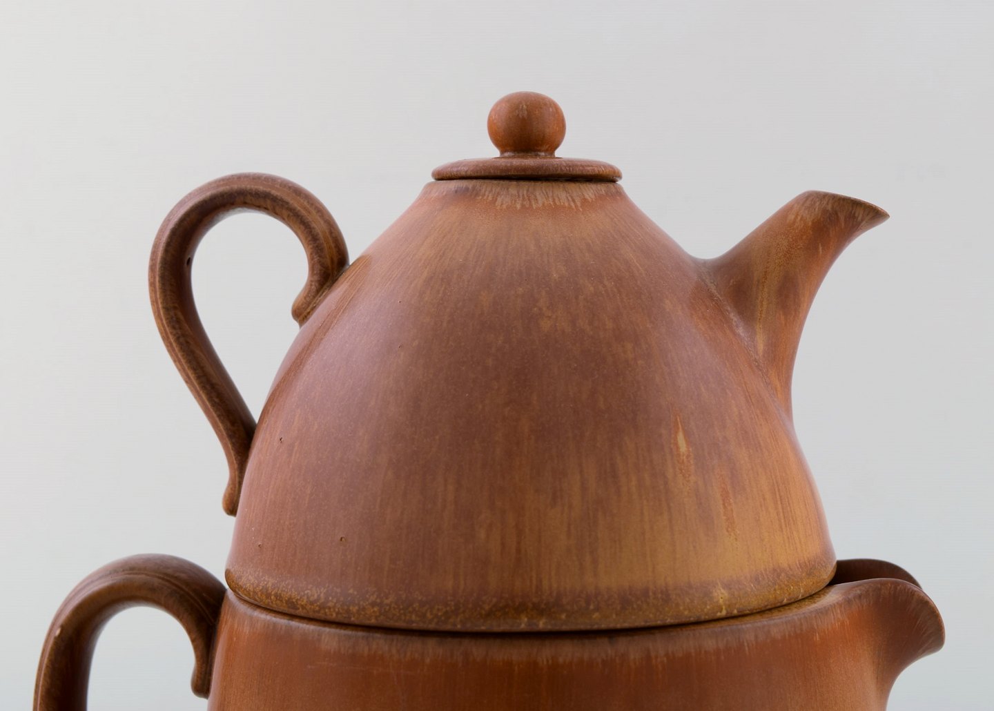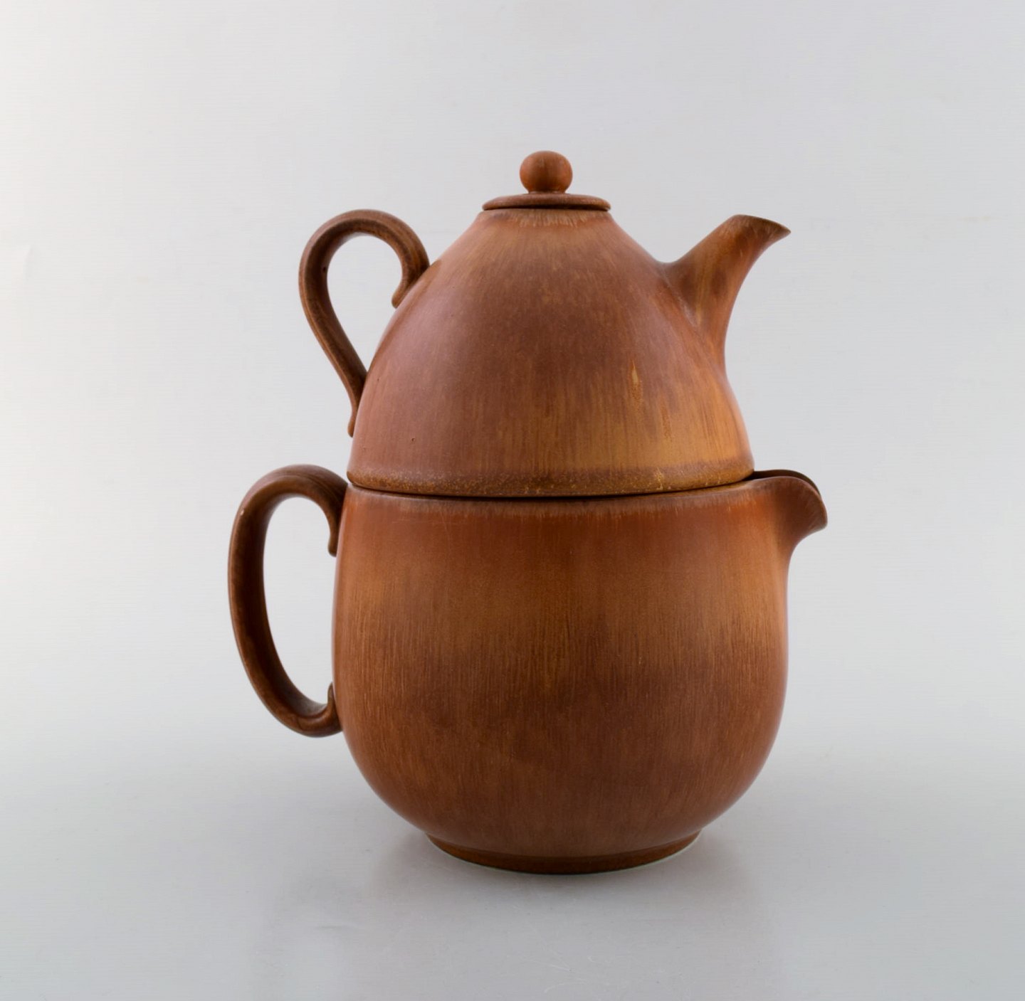 Gunnar Nylund for Rörstrand / Rørstrand. Double teapot in glazed ceramics. Beautiful glaze in hazel brown shades. 1960's. Measures: 21 x 19 cm. In very good condition. Stamped. 1st factory quality.