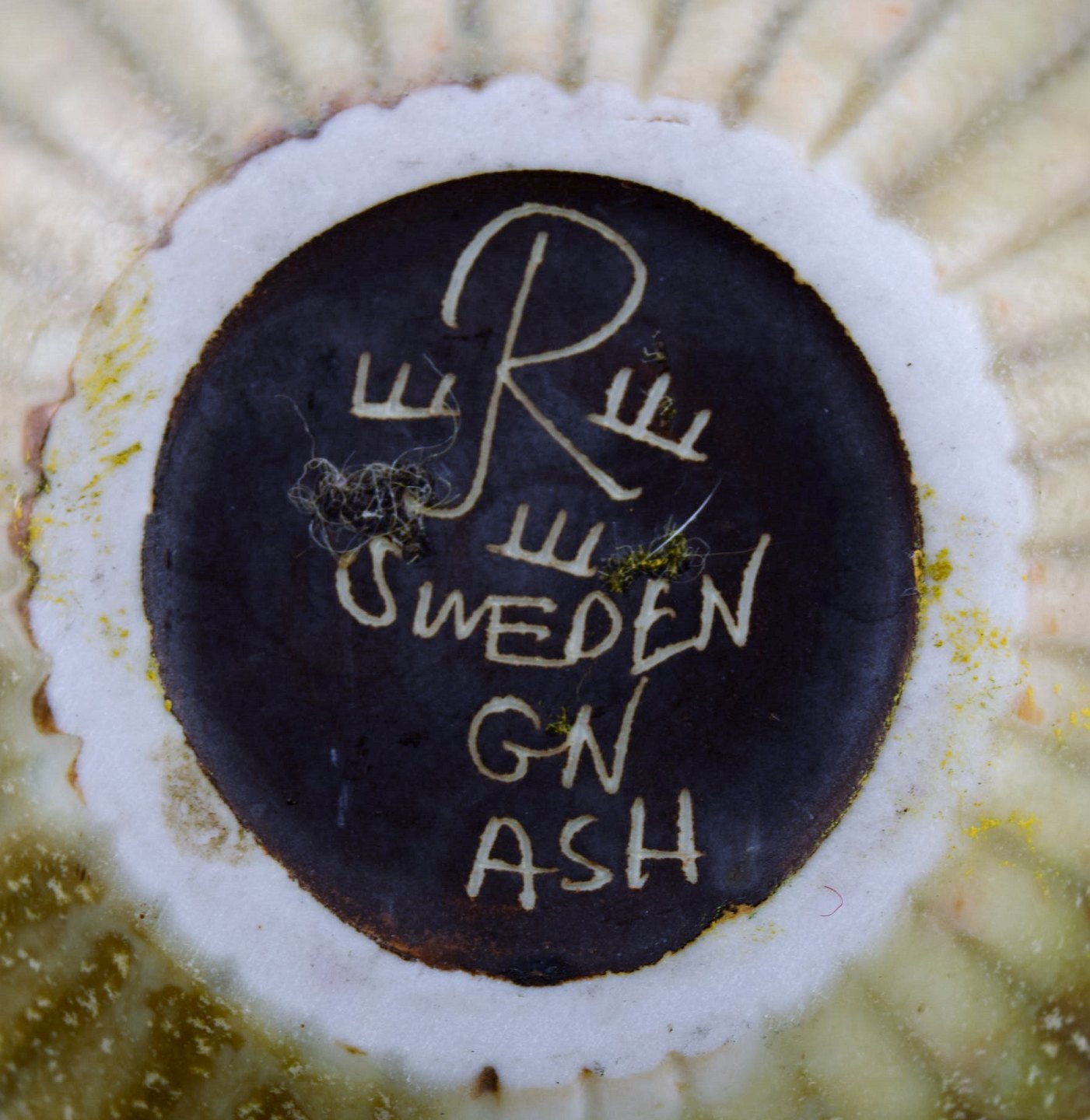 Gunnar Nylund for Rörstrand/Rørstrand. Skål i glaseret keramik. Stribet design på smuk æggeskalsglasur. 1960'erne. Måler: 8 x 5,5 cm. I flot stand. Stemplet. 1. sortering.