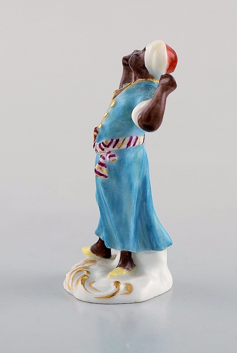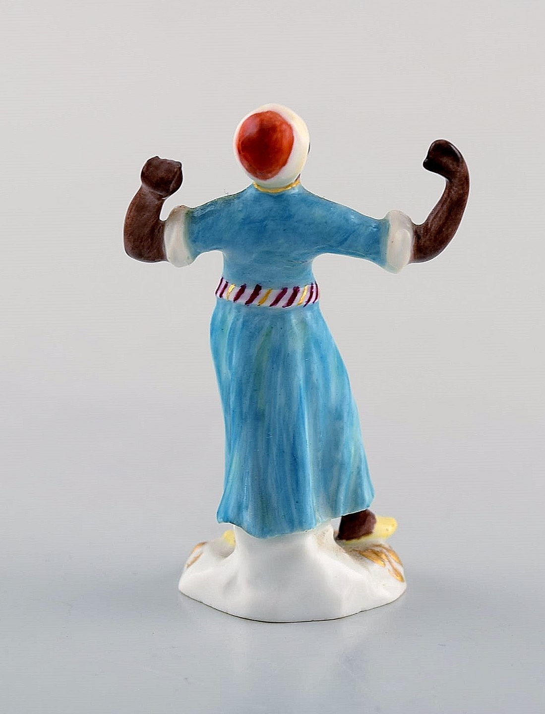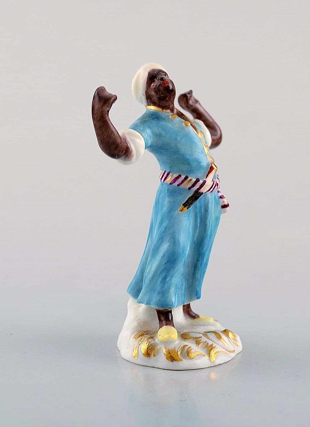 Sjælden antik Meissen miniature figur efter Johann Joachim Kändler i håndmalet porcelæn. Morian. Dateret 1850-80. Måler: 6 x 4 cm. I flot stand. Stemplet.