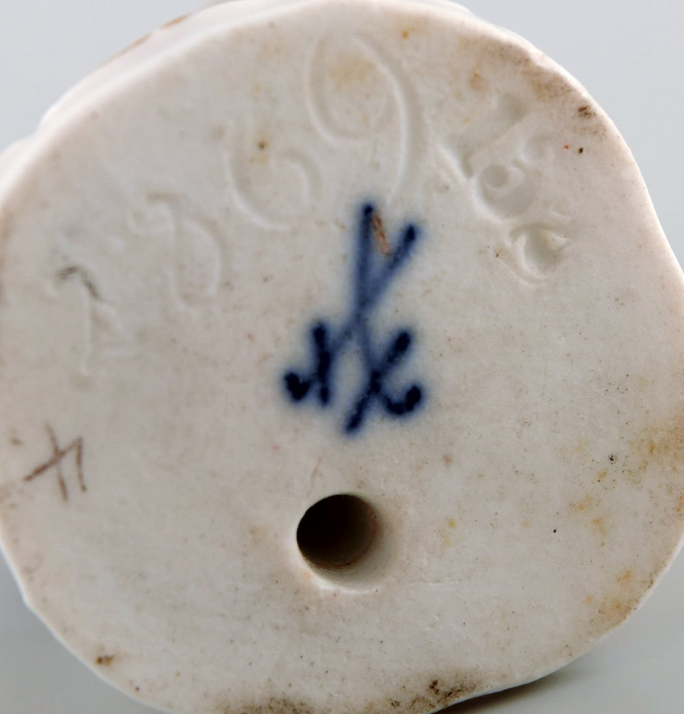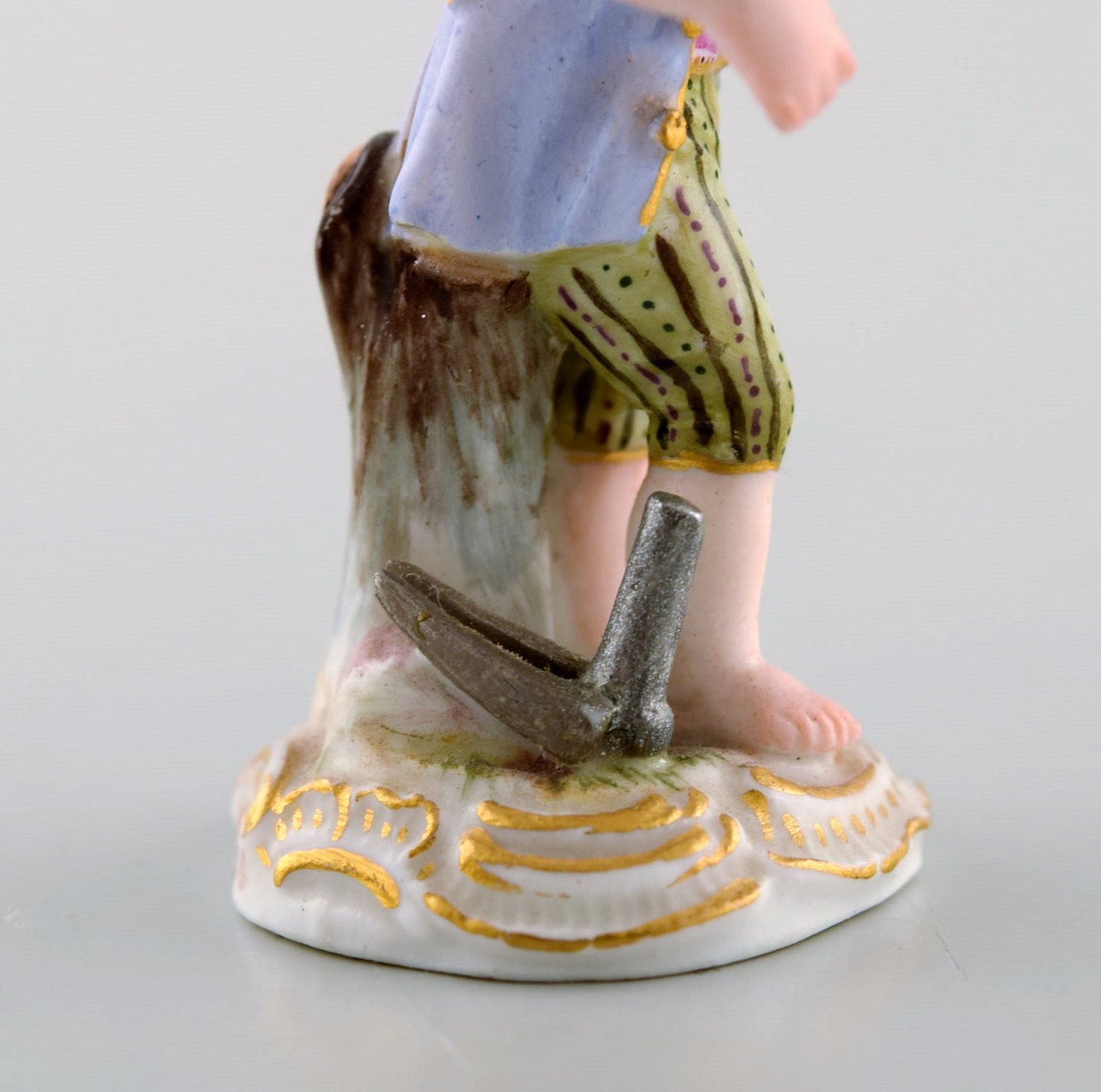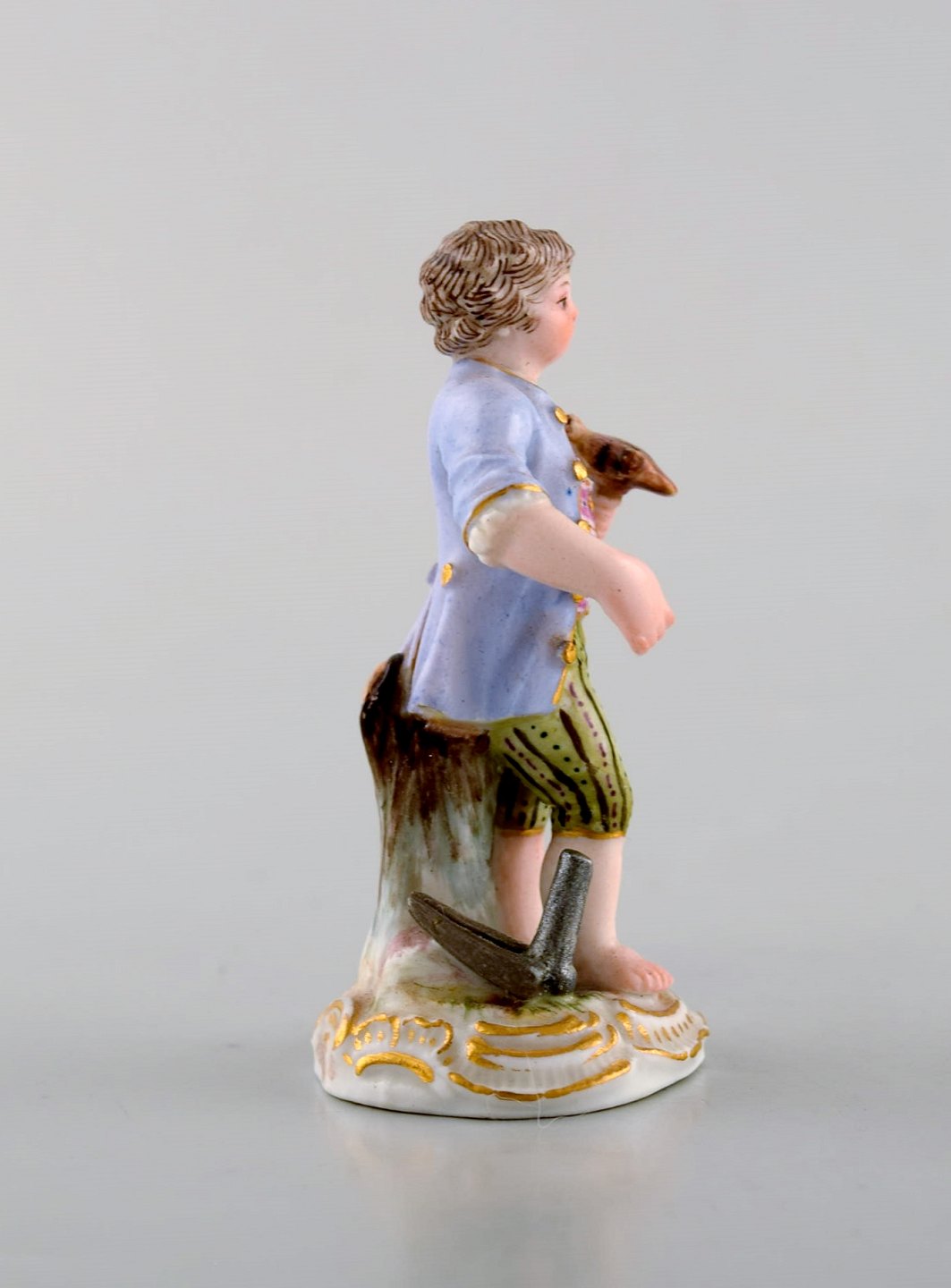 Sjælden antik Meissen miniature figur efter Johann Joachim Kändler i håndmalet porcelæn. Dreng med falk. Dateret 1850-80. Modelnummer 2869. Måler: 6,3 x 3,5 cm. I flot stand. Stemplet.