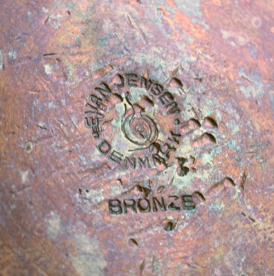 Evan Jensen, Danmark. Art deco skål i bronze med springende buk. 1940'erne.