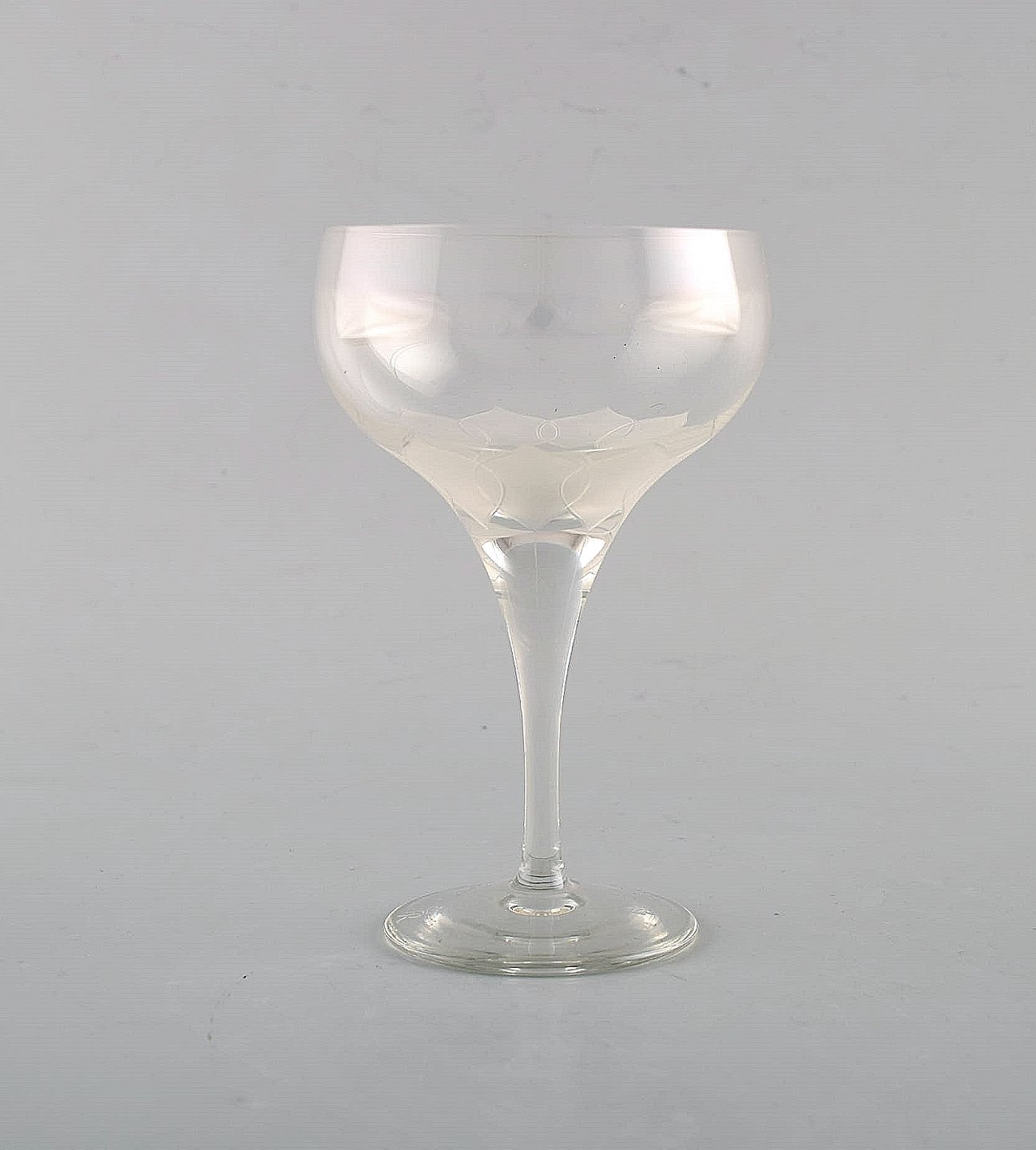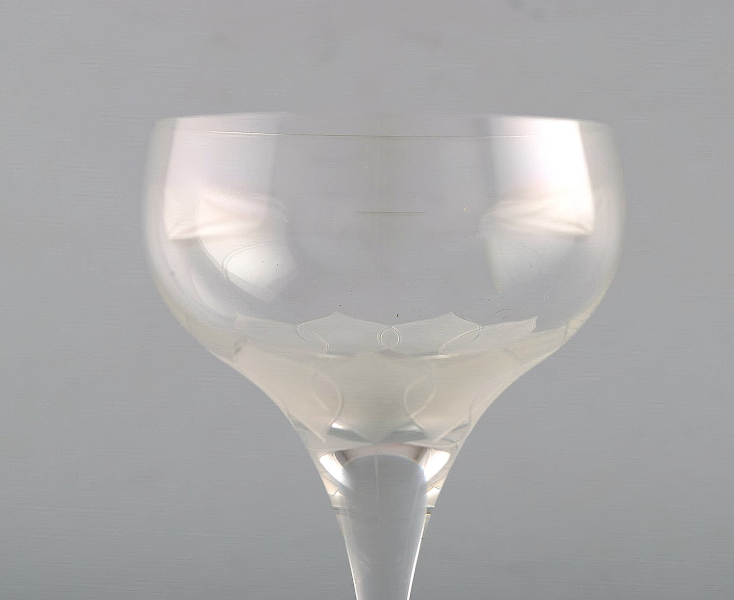 Bjørn Wiinblad (1918-2006) for Rosenthal. Four "Lotus" glasses in clear art glass decorated with lotus flower. 1980's.