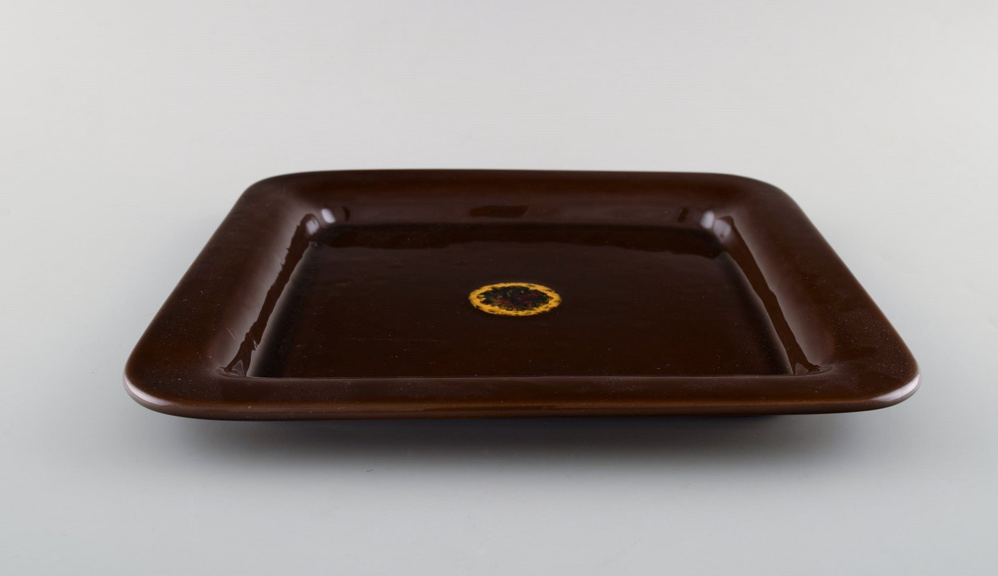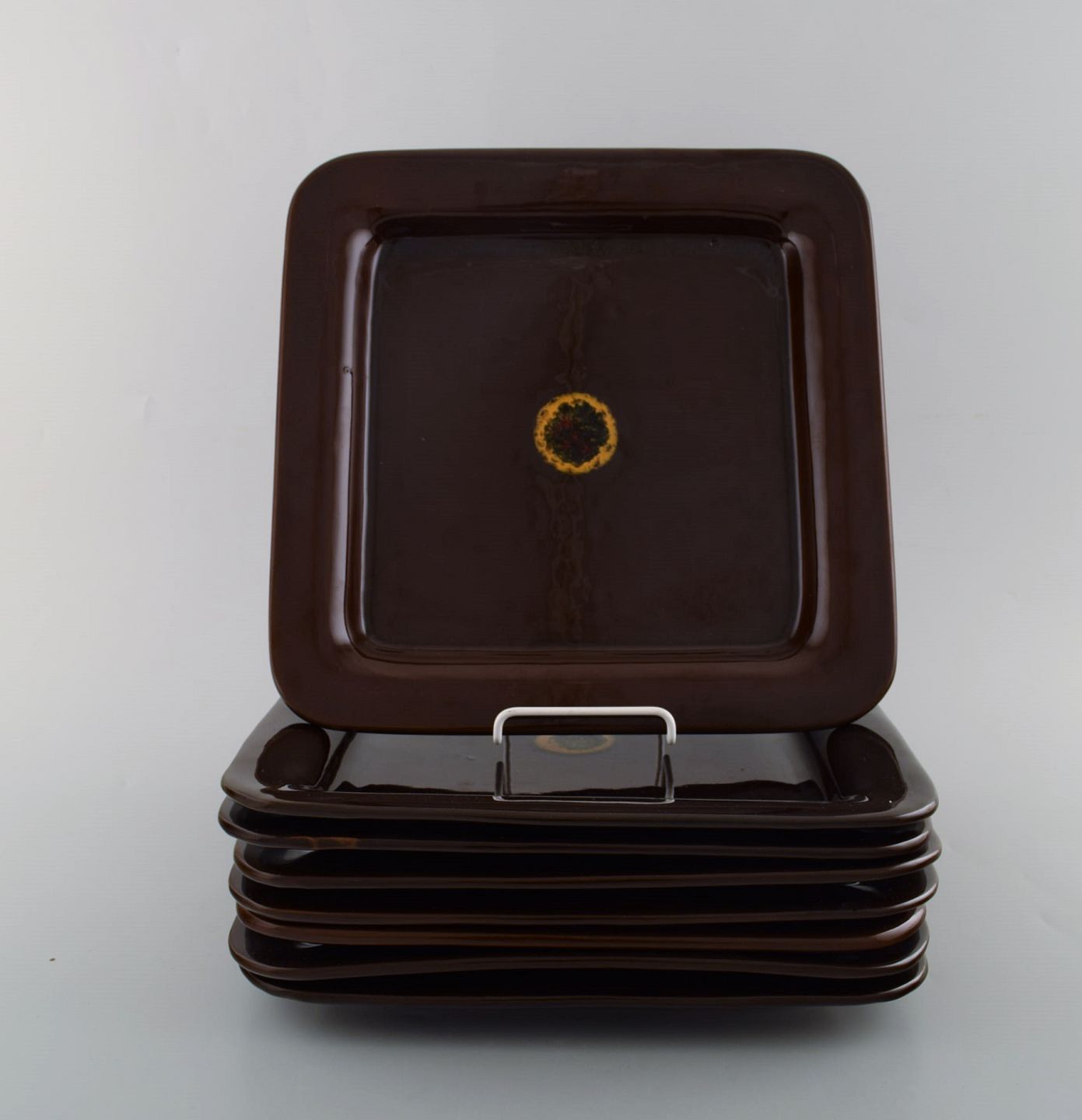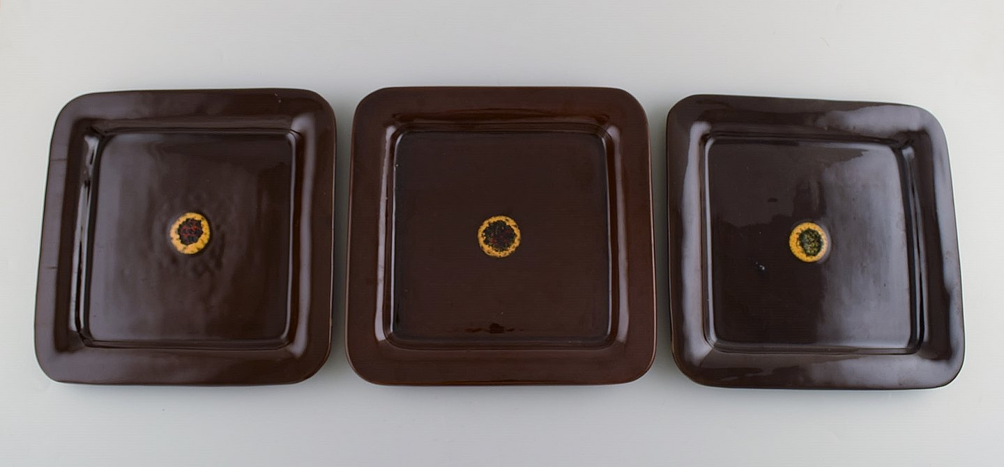 Bjørn Wiinblad (1918-2006). Syv kvadratiske "Othello" tallerkener i glaseret stentøj. 1960'erne. Stemplet. Måler: 26,5 x 26,5 cm. I flot stand.