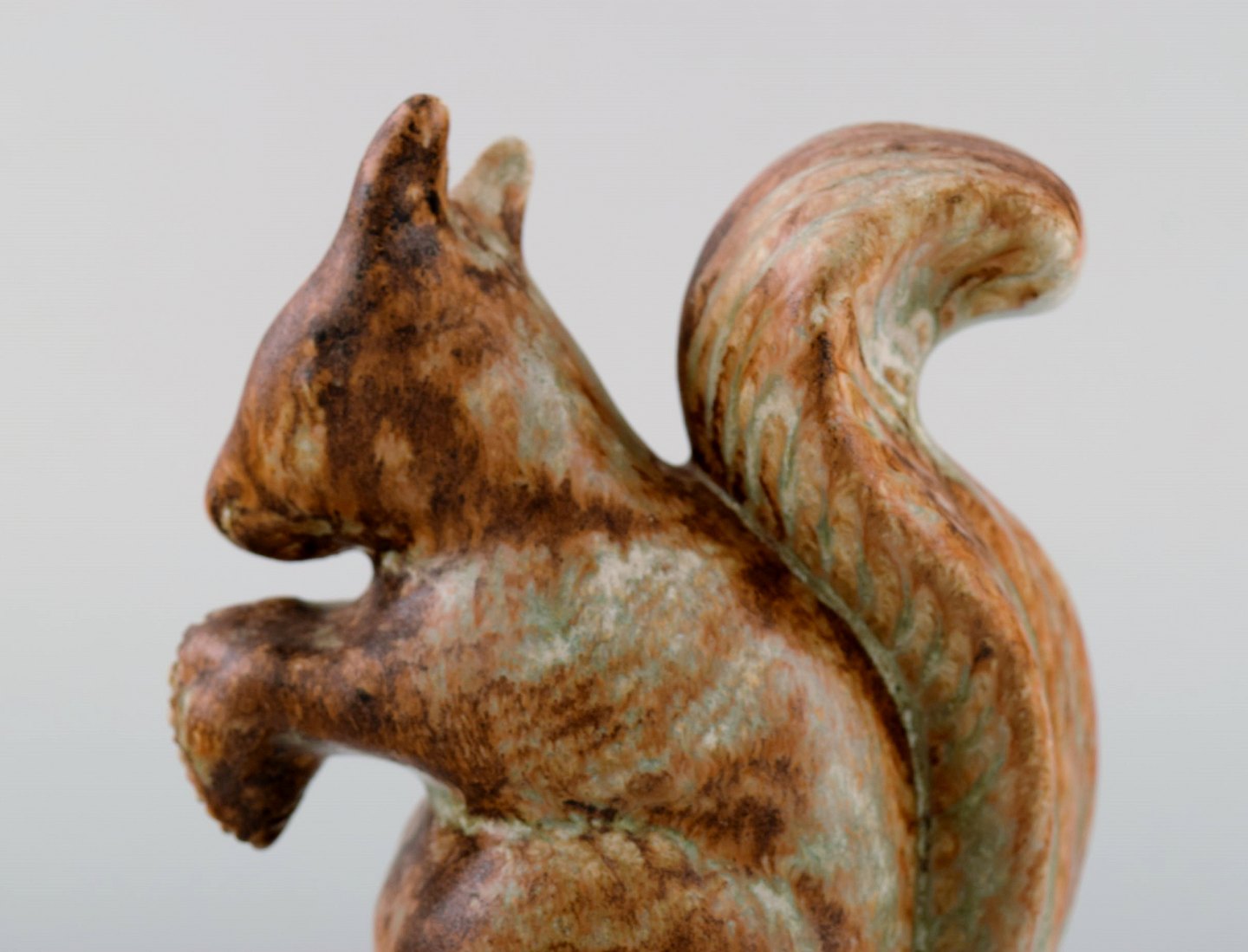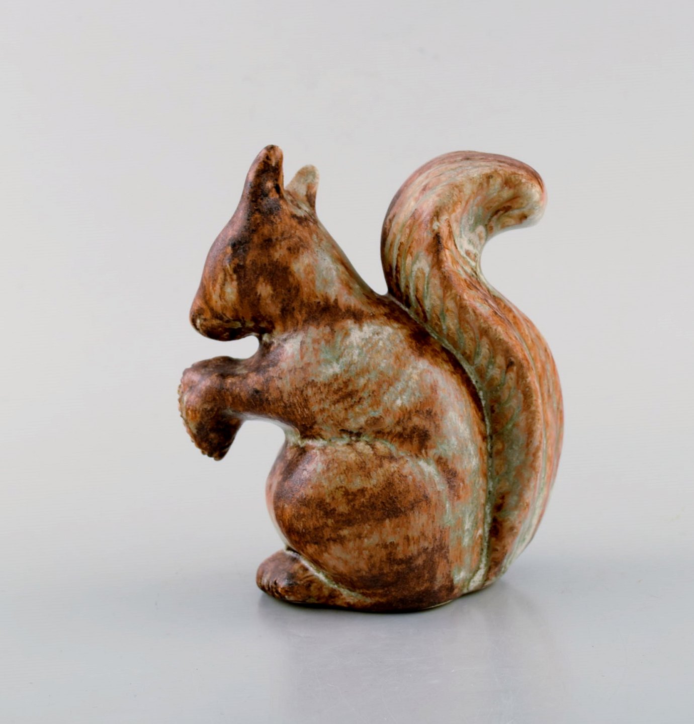 Ego Stengods. Lidköping, Sverige. Unika egern i glaseret stentøj. 1960'erne.
