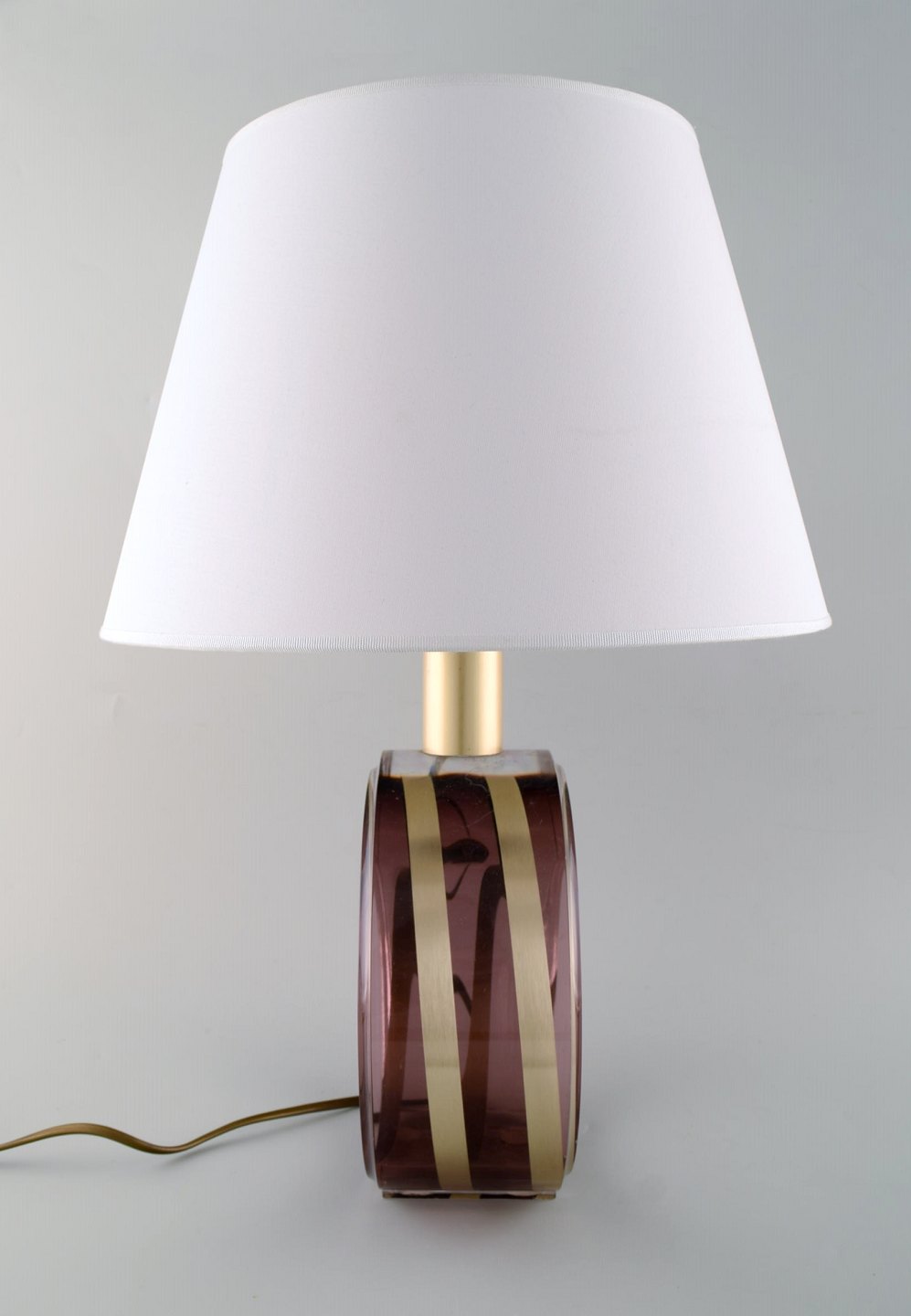 Italiensk design. Bordlampe af indfarvet plexiglas og messing. 1970'erne. Måler: 33 x 22 cm. I flot stand.