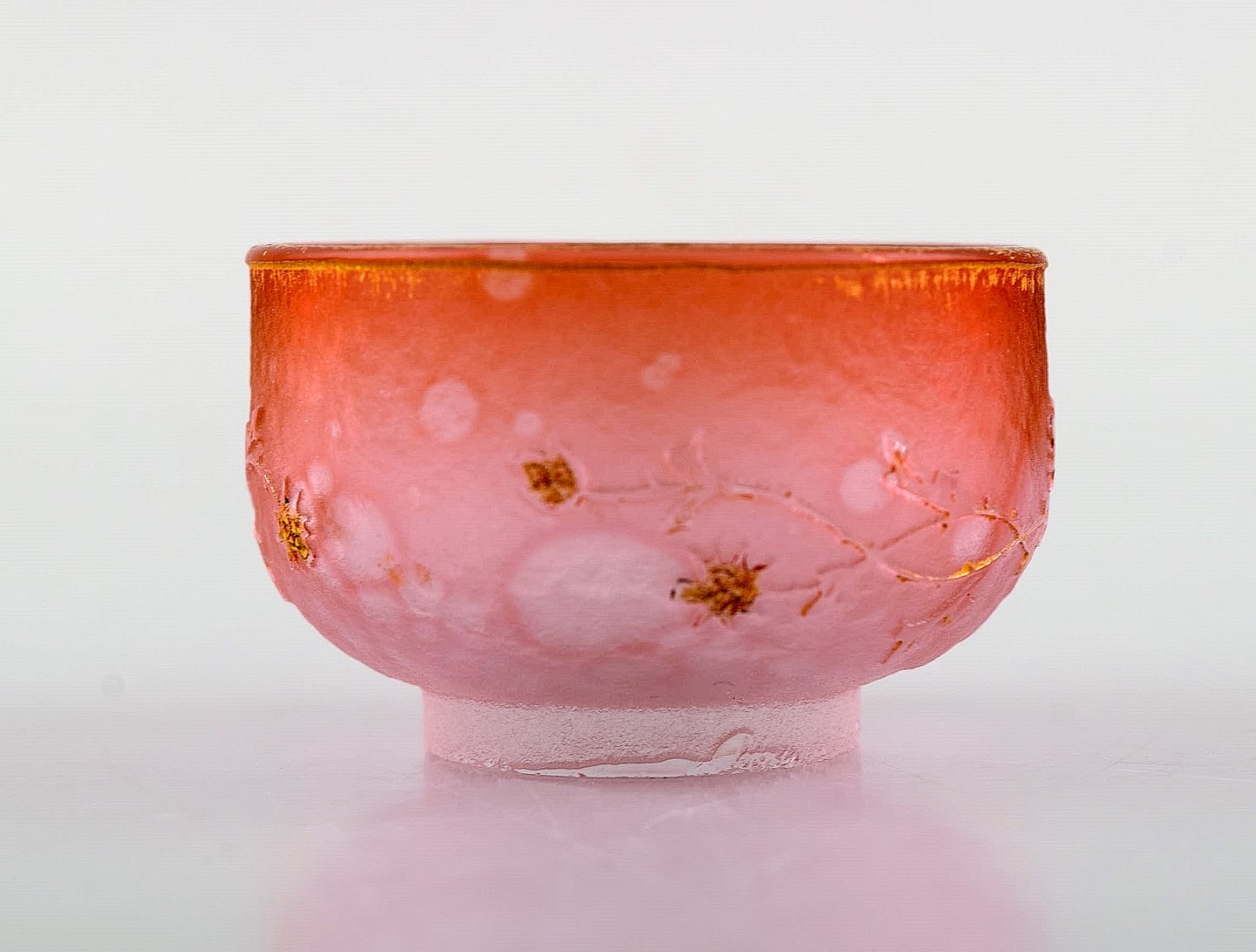 Daum Nancy, Frankrig. Lyserød art nouveau miniature skål i håndmalet mundblæst kunstglas. Blomster og gulddekoration. Ca. 1900.