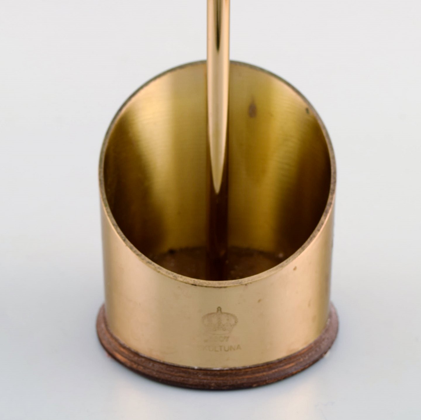 Skultuna, Sverige. Sjælden flaskeholder i messing. Svensk design. 1960'erne. Stemplet. Måler: 25,5 x 9,5 cm. I flot stand.