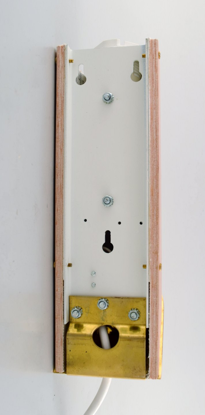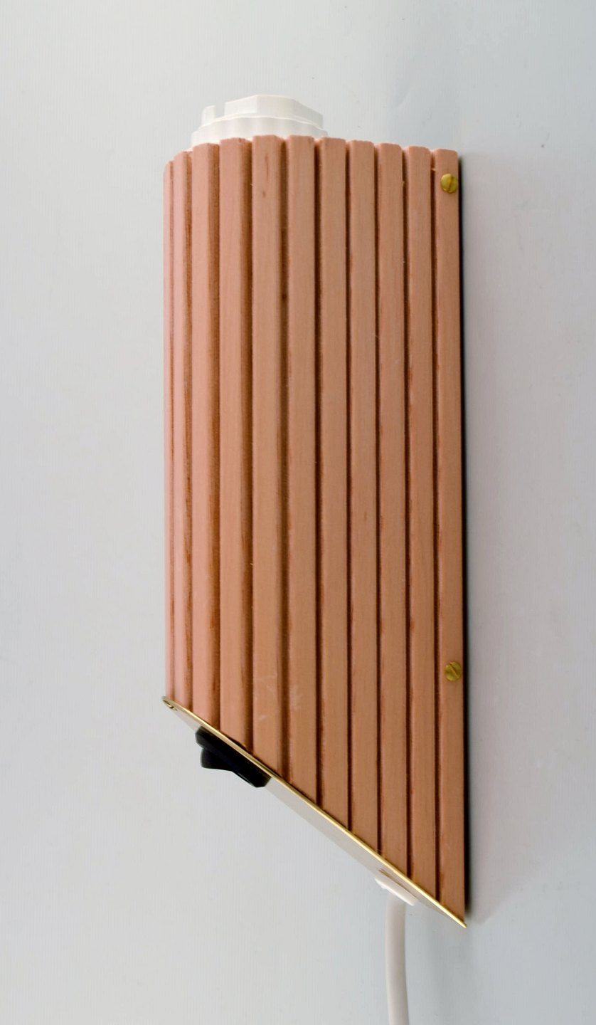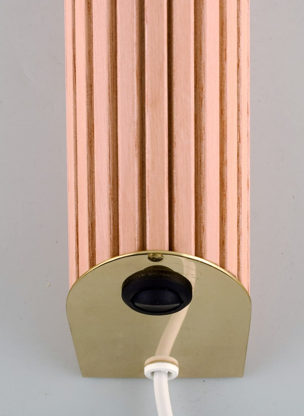 Hans Agne Jakobsson (1919-2009). A pair of wooden and brass wall lamps manufactured at Markaryd, Sweden. Ca. 1970. In very good condition. Measures: 25 x 9 cm.