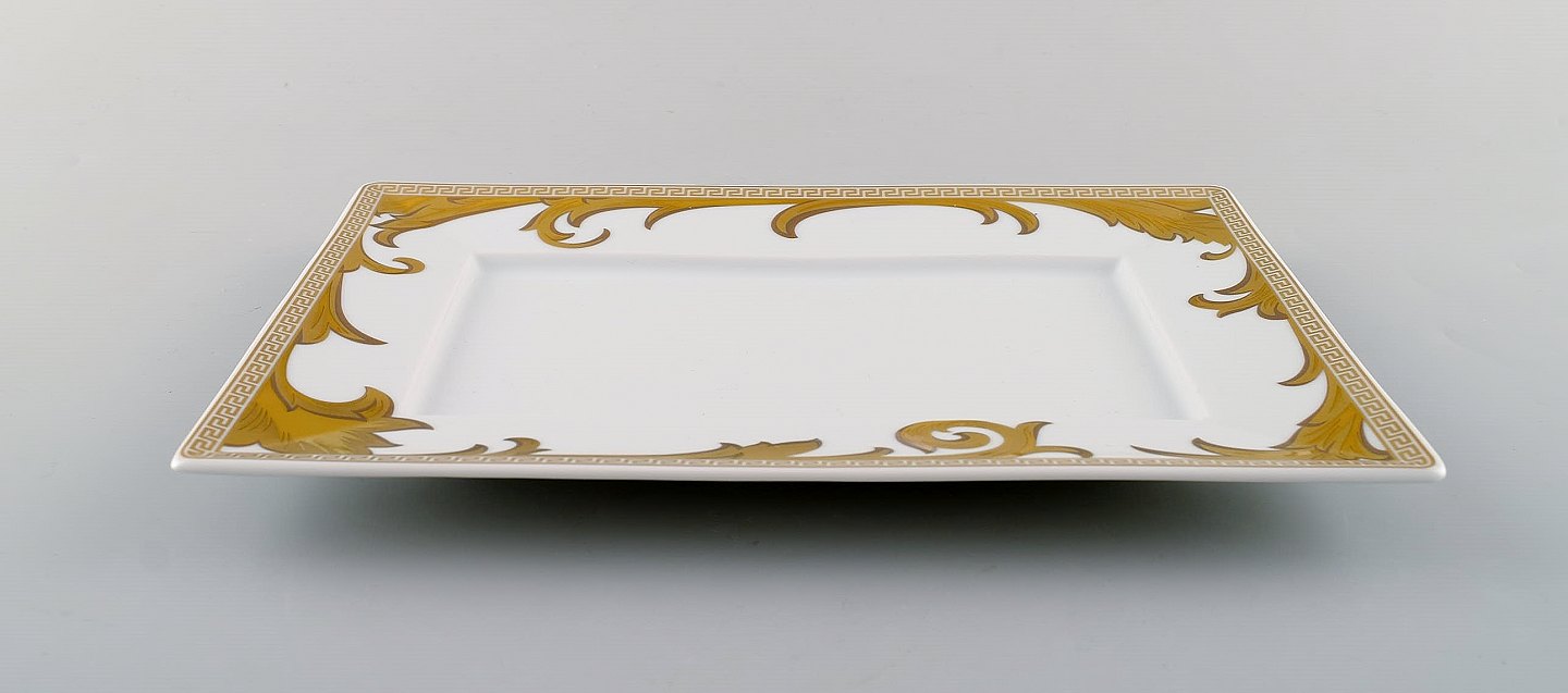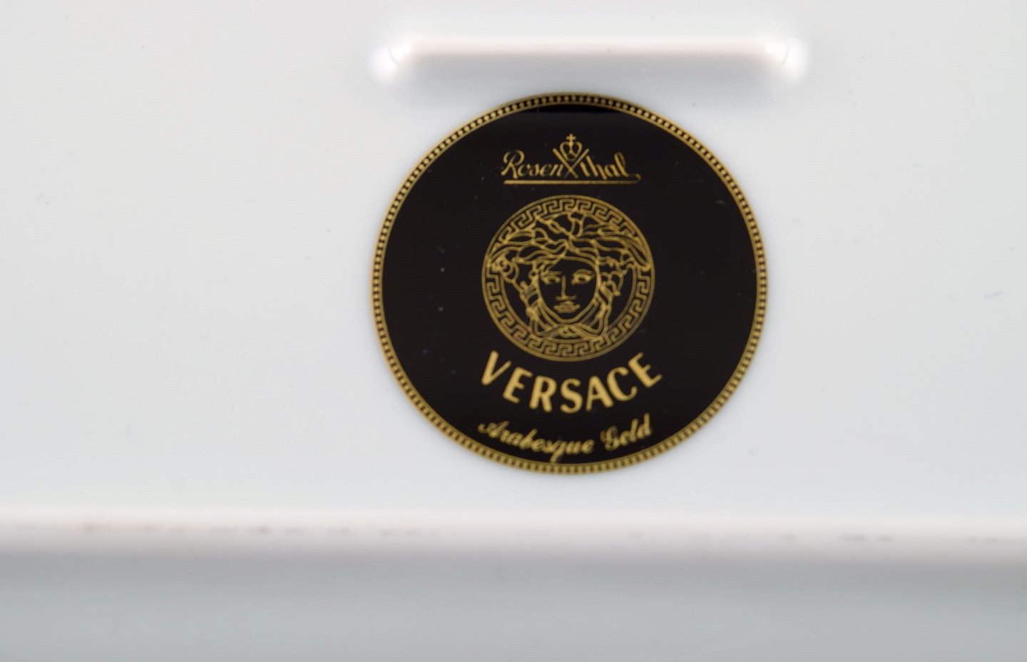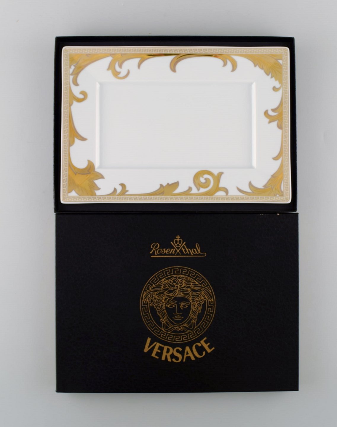 Gianni Versace for Rosenthal. "Arabesque Gold" porcelain dish / tray with gold decoration. Late 20th century. In perfect condition. Measures: 27 x 19 cm. Stamped. Original box included.