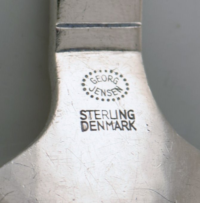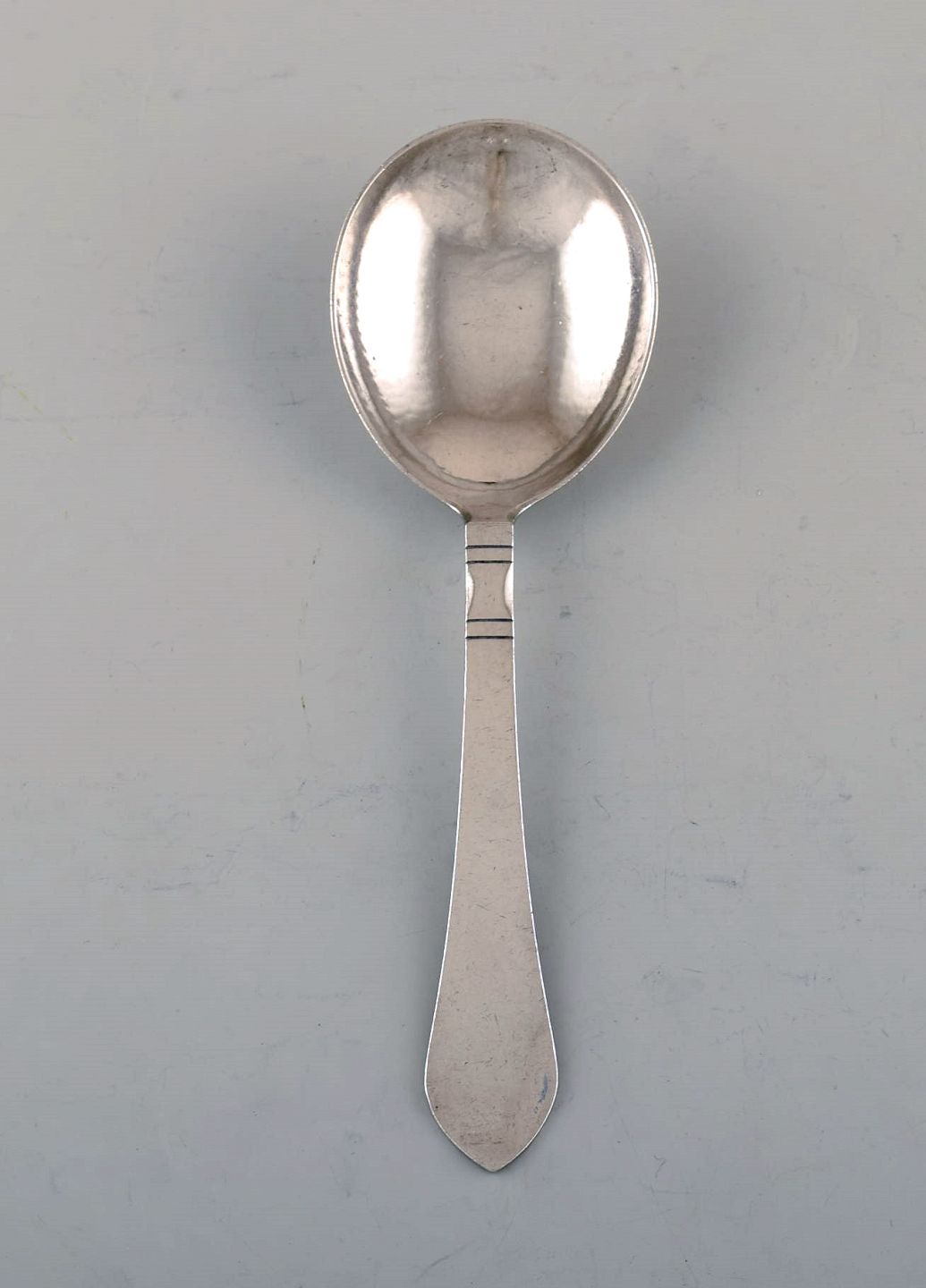 Georg Jensen Continental serving spoon in hammered sterling silver. Measures: 20.5 cm. Stamped. In very good condition. The cutlery was designed by Georg Jensen in 1906.