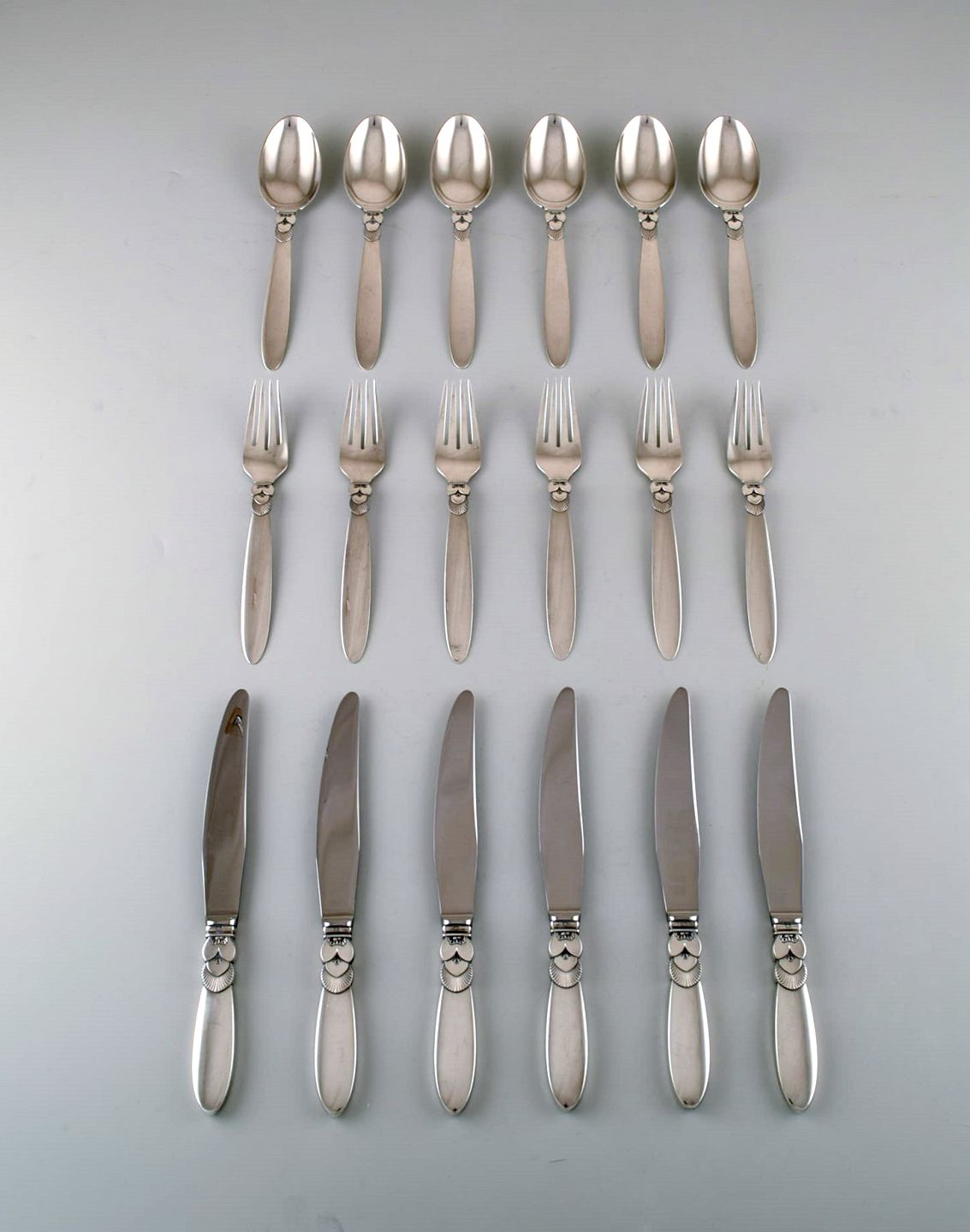 Georg Jensen "Kaktus" bestik. Komplet middagsservice til seks personer i sterlingsølv.