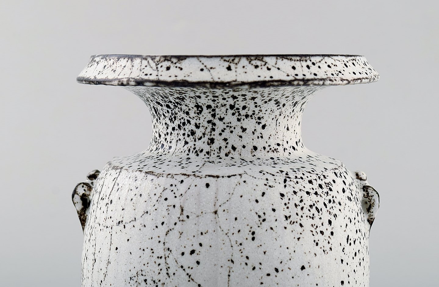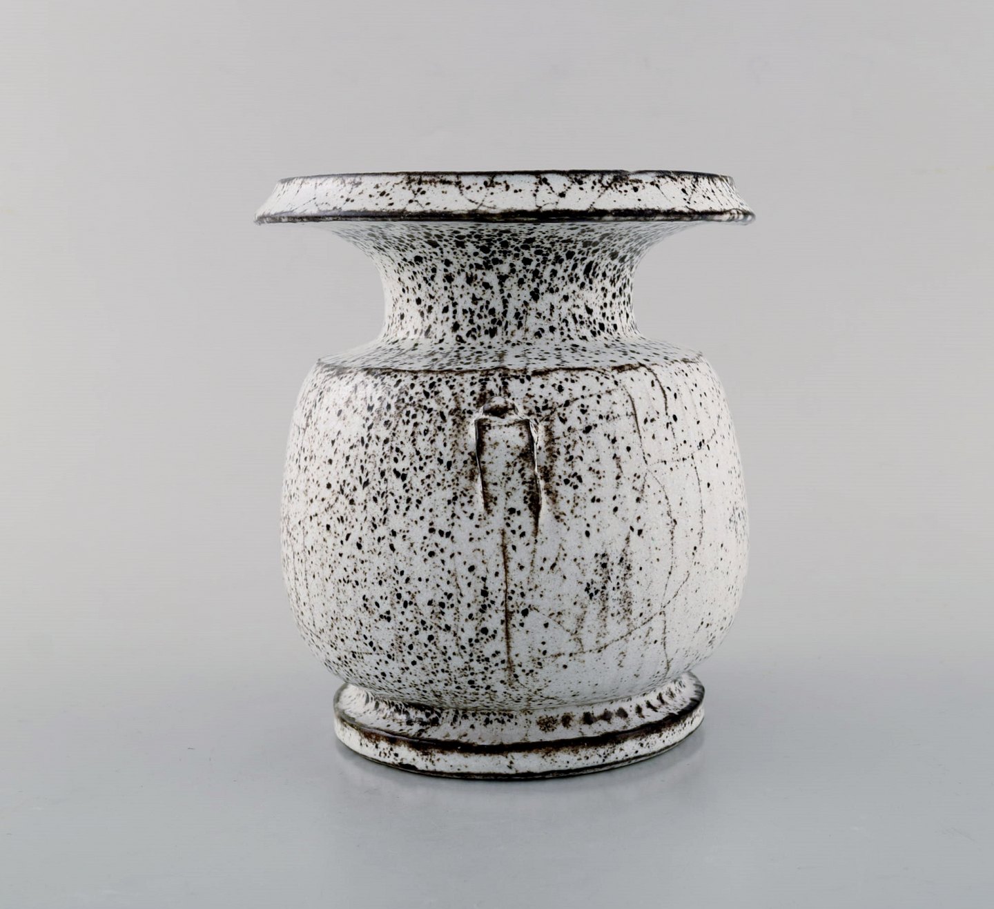 Svend Hammershøi for Kähler, HAK. Vase i glaseret stentøj. Smuk gråsort dobbeltglasur. 1930/40'erne. Stemplet. I flot stand. Måler: 15,5 x 14 cm.
