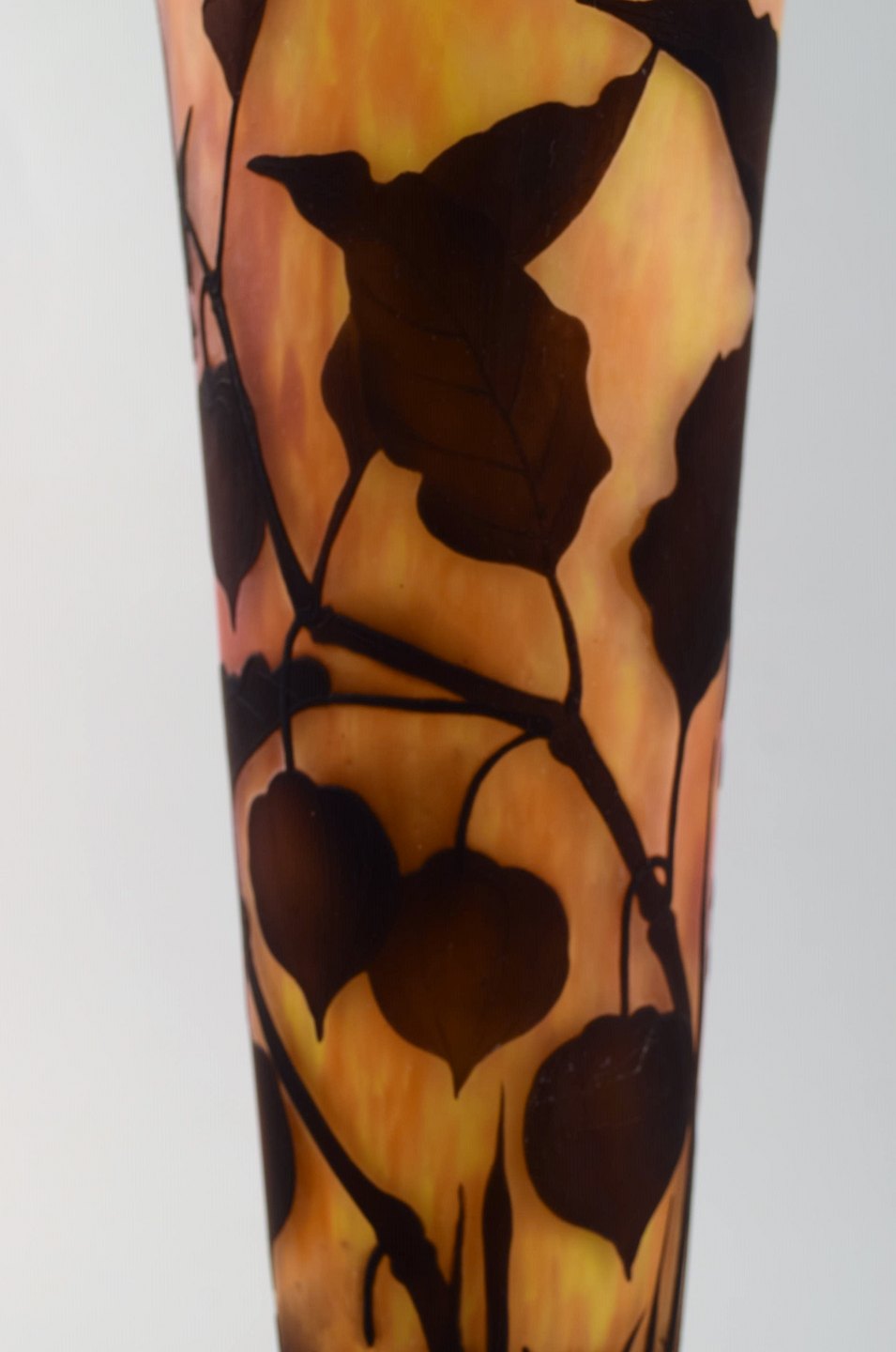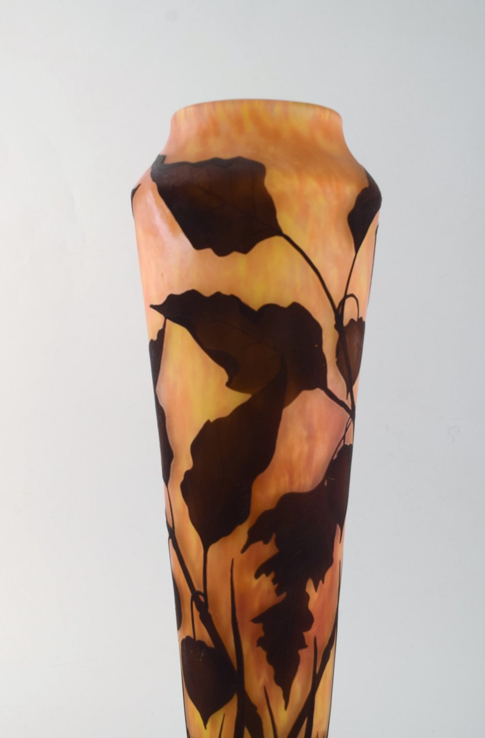 Daum Nancy, Frankrig. Stor vase i mundblæst kunstglas dekoreret med bladværk. Ca. 1920.