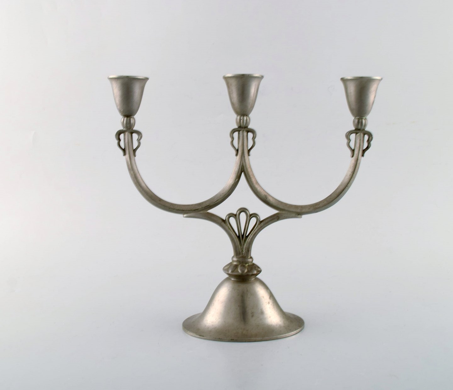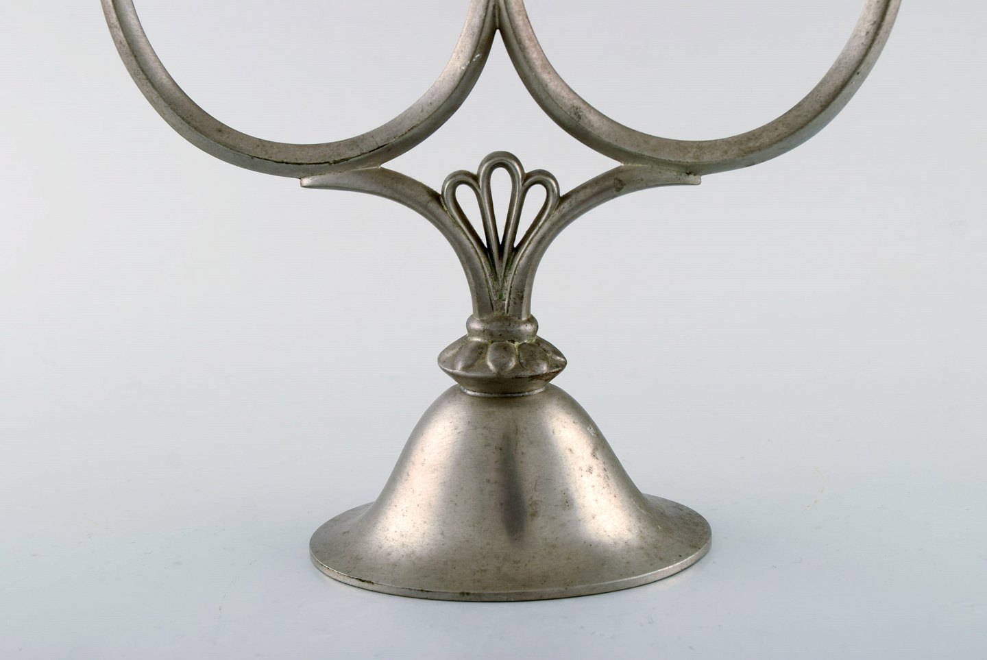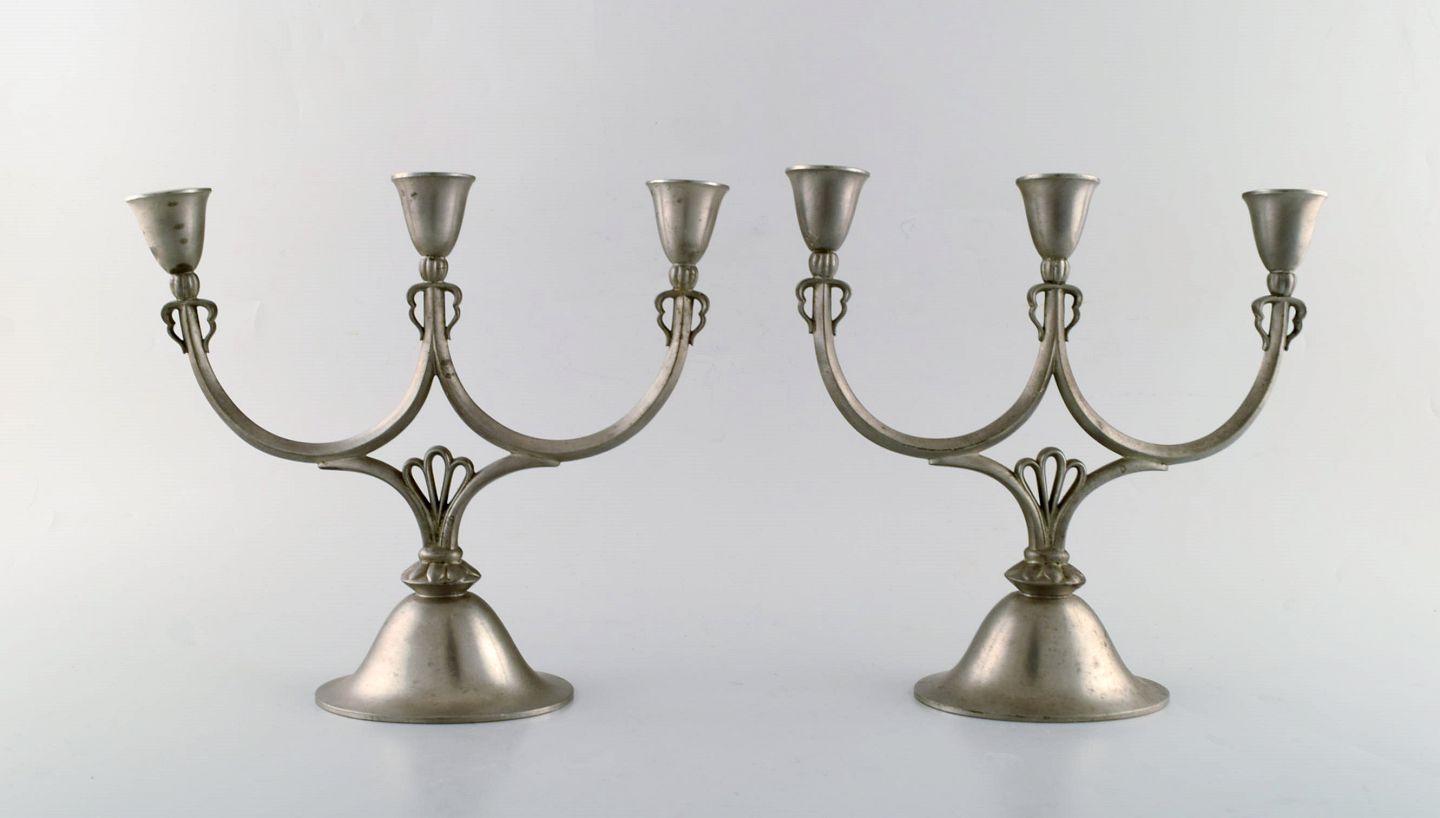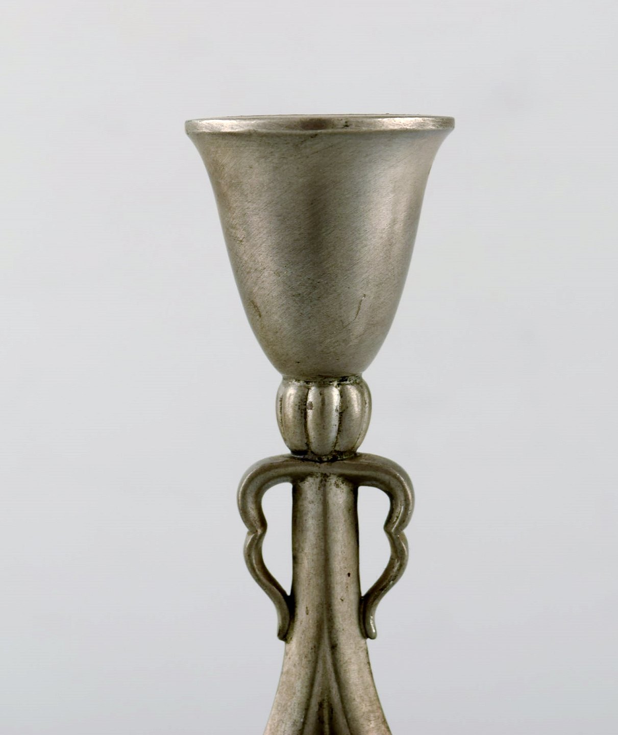Just Andersen, Danmark. Et par tidlige lysestager i tin. 1920/30'erne. Måler: 24,5 x 22,5 cm. I flot stand. Stemplet.