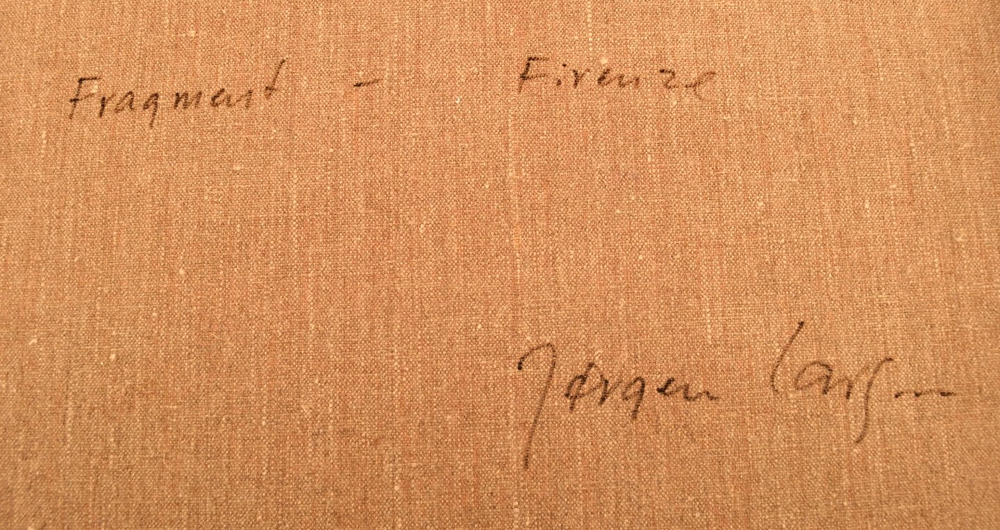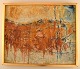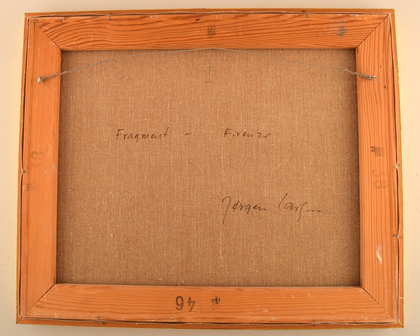 Jørgen Larsen, Danmark. Olie på lærred. "Fragment-Firenze". Stærk orange palette. 1960'erne.