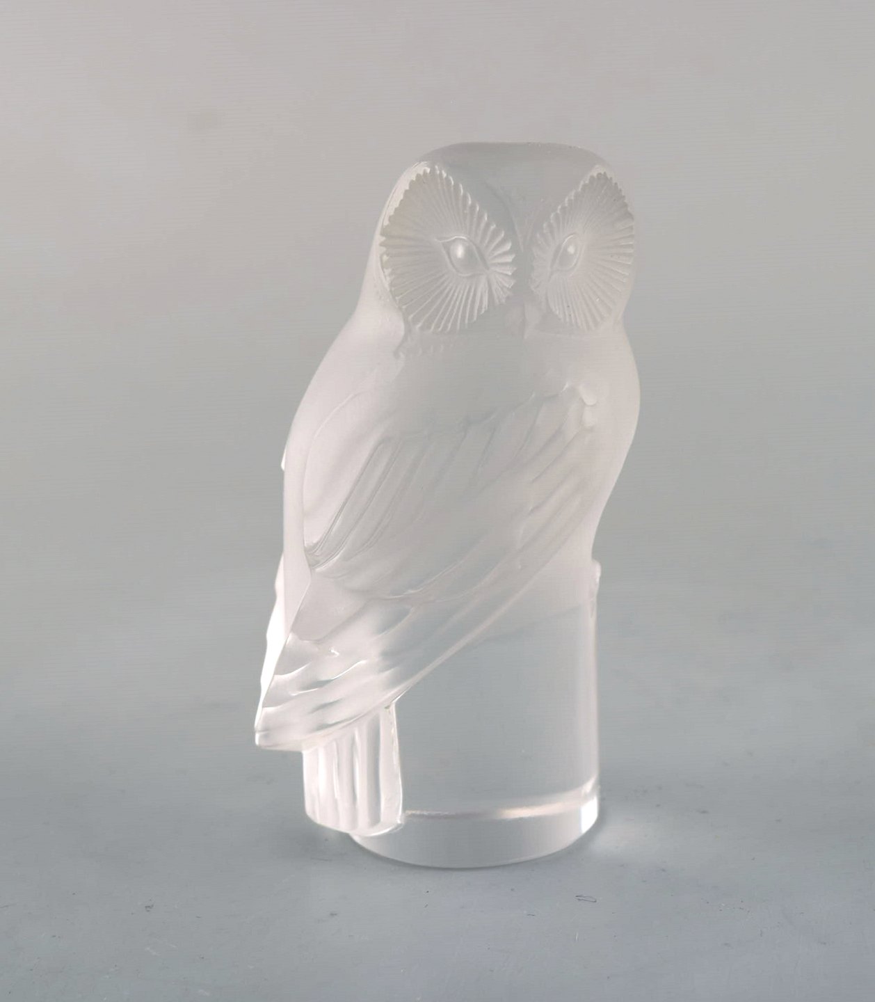 Lalique. Ugle og fugl i klart kunstglas. 1960'erne.