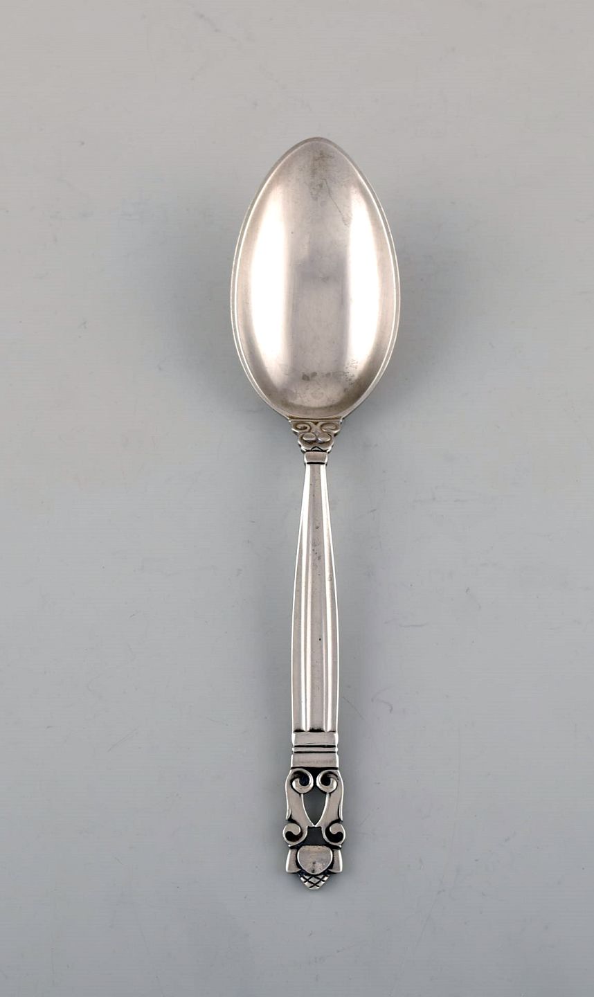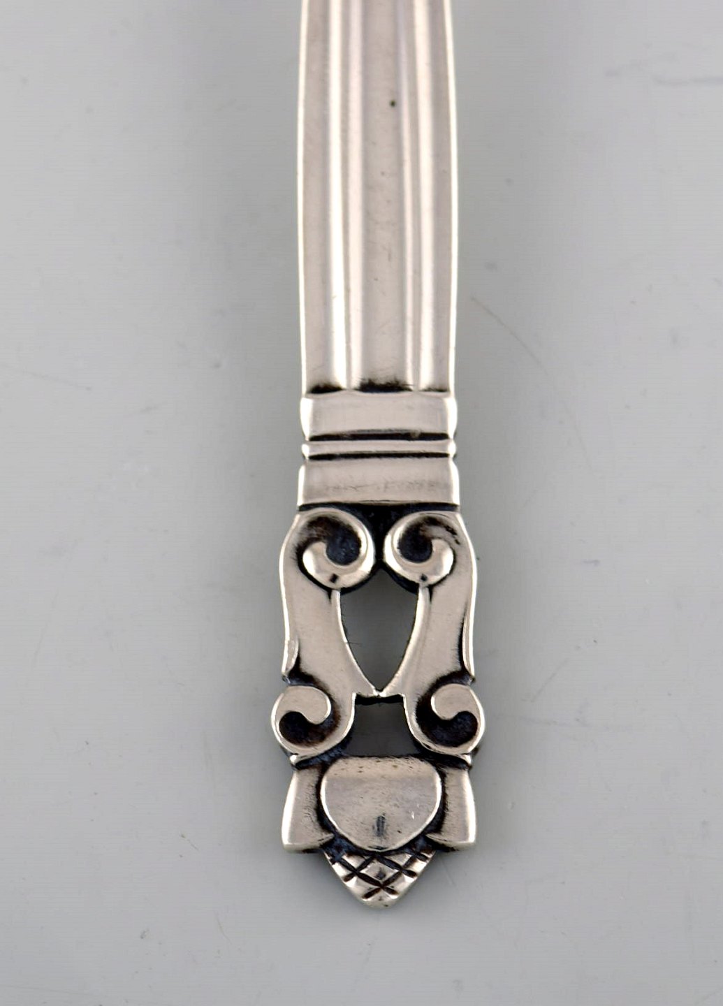 Georg Jensen "Konge" Dessertske i sterlingsølv. To stk på lager. Designer: Johan Rohde. Længde: 17 cm. Stemplet. I flot stand.