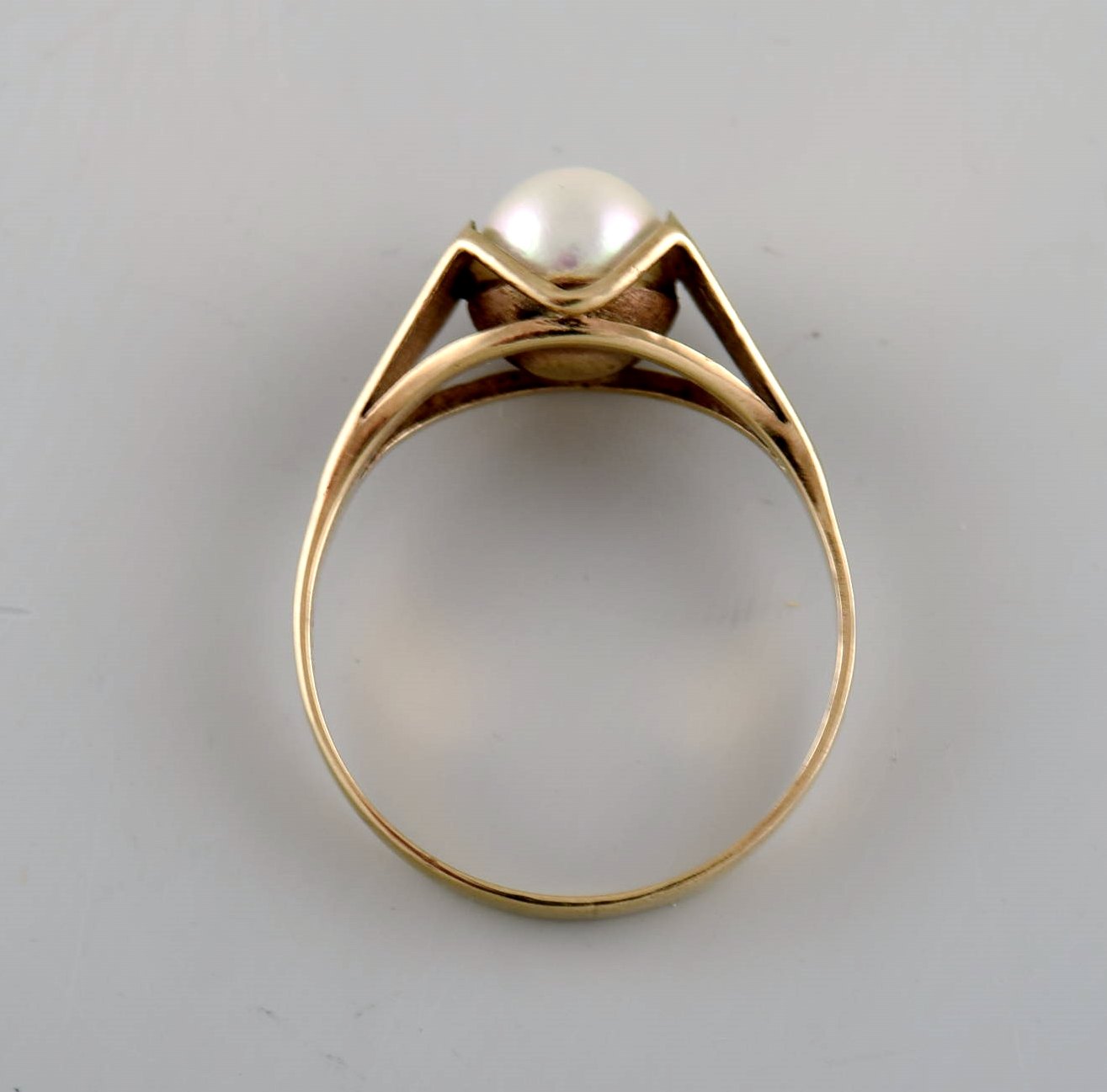 Skandinavisk guldsmed. 8 karat guldring prydet med kulturperle. 1930/40'erne.