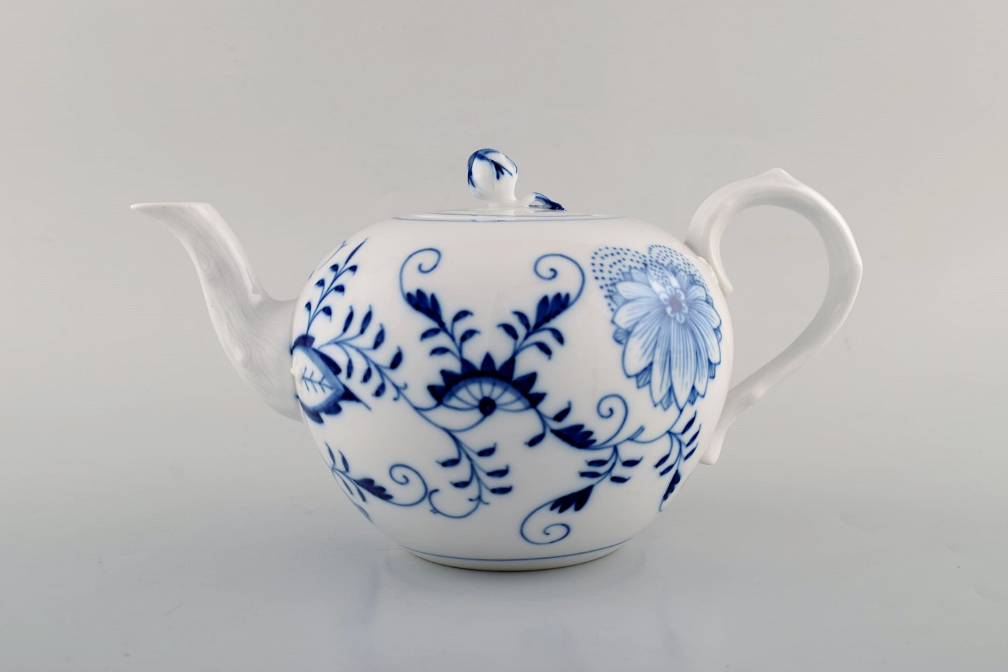 Antik Meissen "Løgmønstret" tekande i håndmalet porcelæn. Tidligt 1900-tallet.