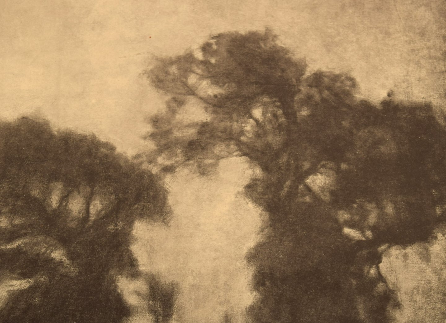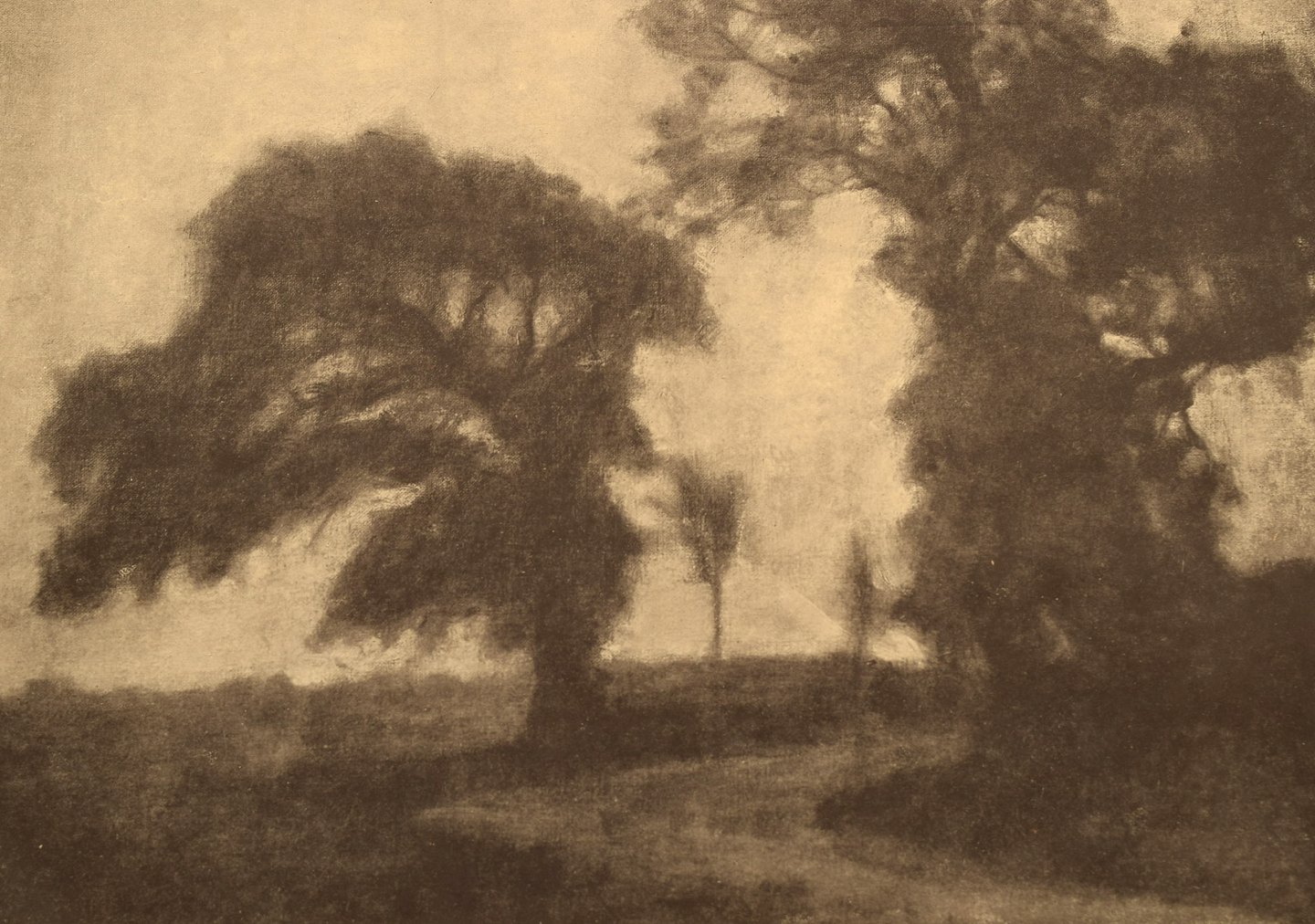 Svend Hammershøi heliogravure med motiv af træer ved Vordingborg. Nummer 75. Tidligt 1900-tallet.