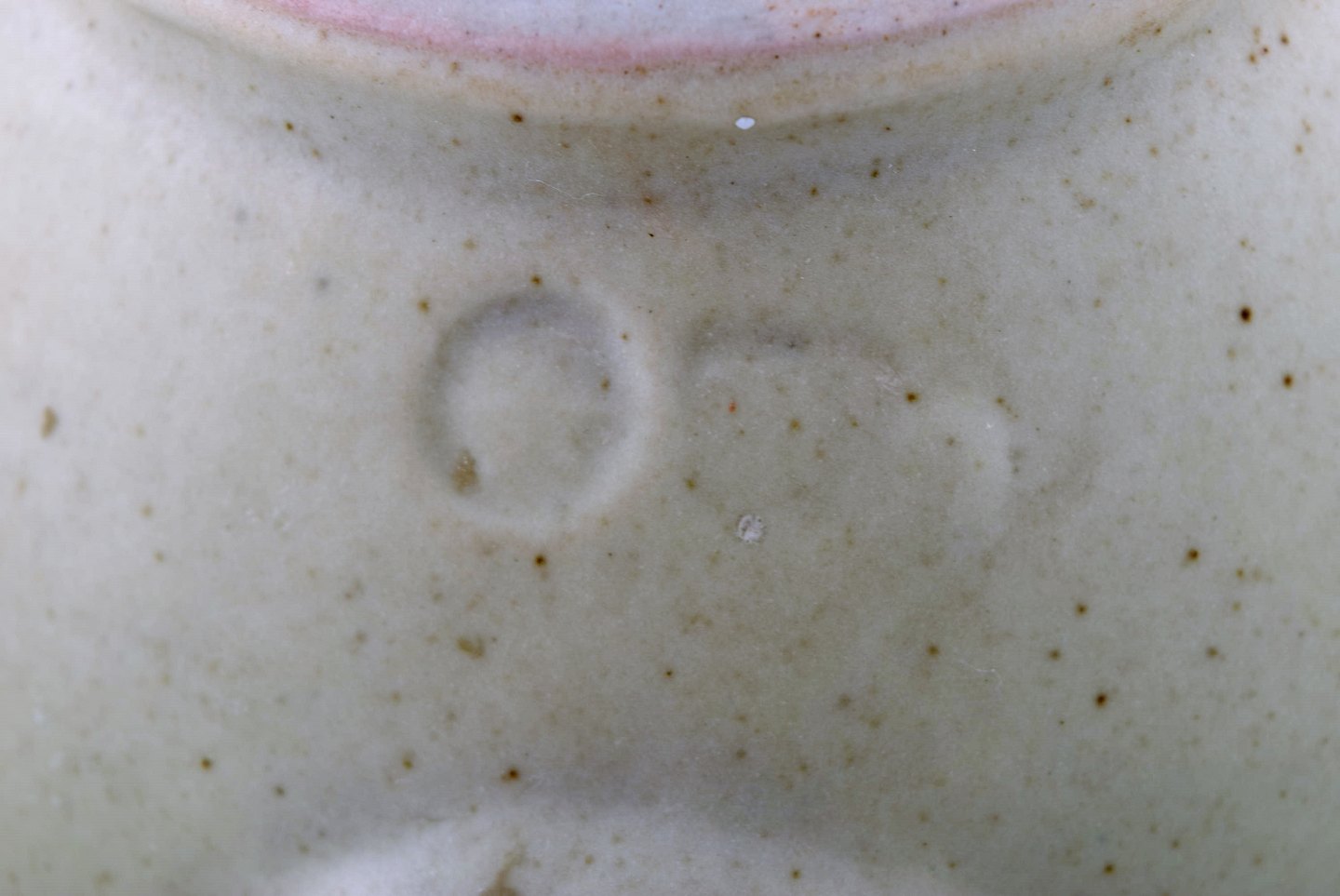 Bernard Howell Leach (1887-1979). Modernistisk tekande med tilhørende låg i glaseret stentøj. Typisk rå 1950'er stentøjsmasse.