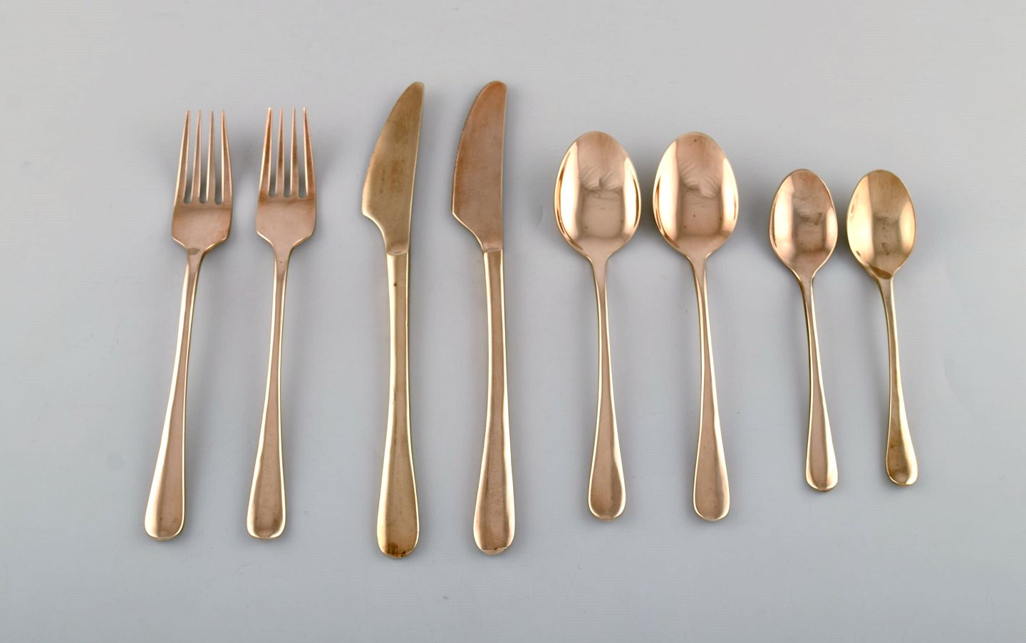Bestående af to frokostknive, to frokostgalfer, to frokostskeer samt to teskeer. Produceret i Thailand for Gense.
