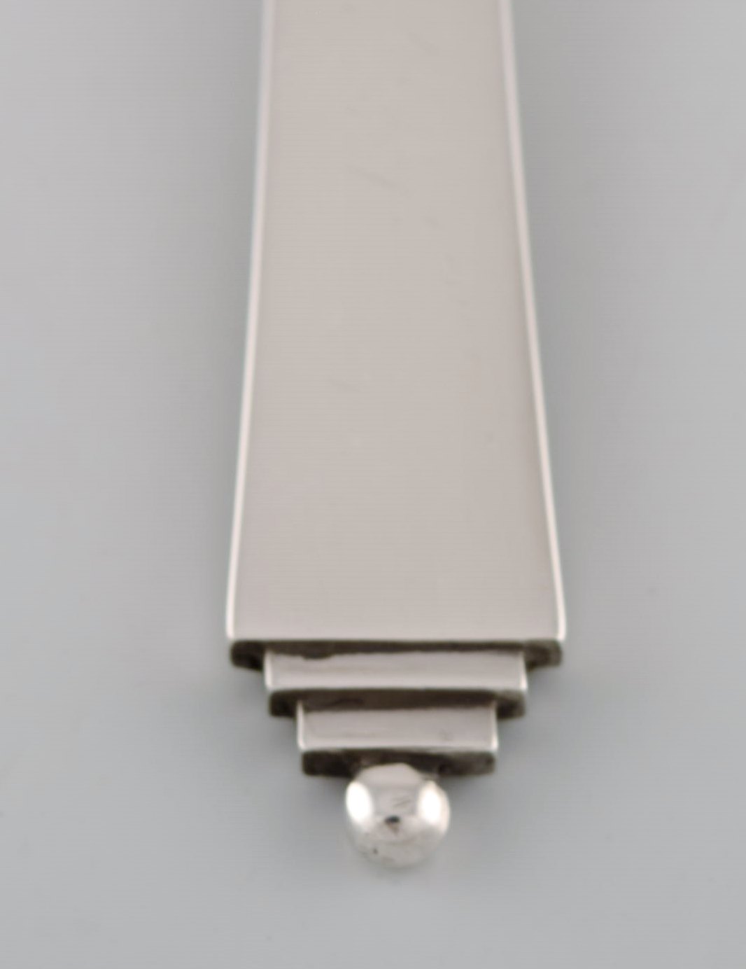 Georg Jensen Pyramide middagsgaffel i sterlingsølv. Dateret 1933-44. Tre styk på lager. Længde: 18,2 cm. Designet af Harald Nielsen 1927. I flot stand. Stemplet.