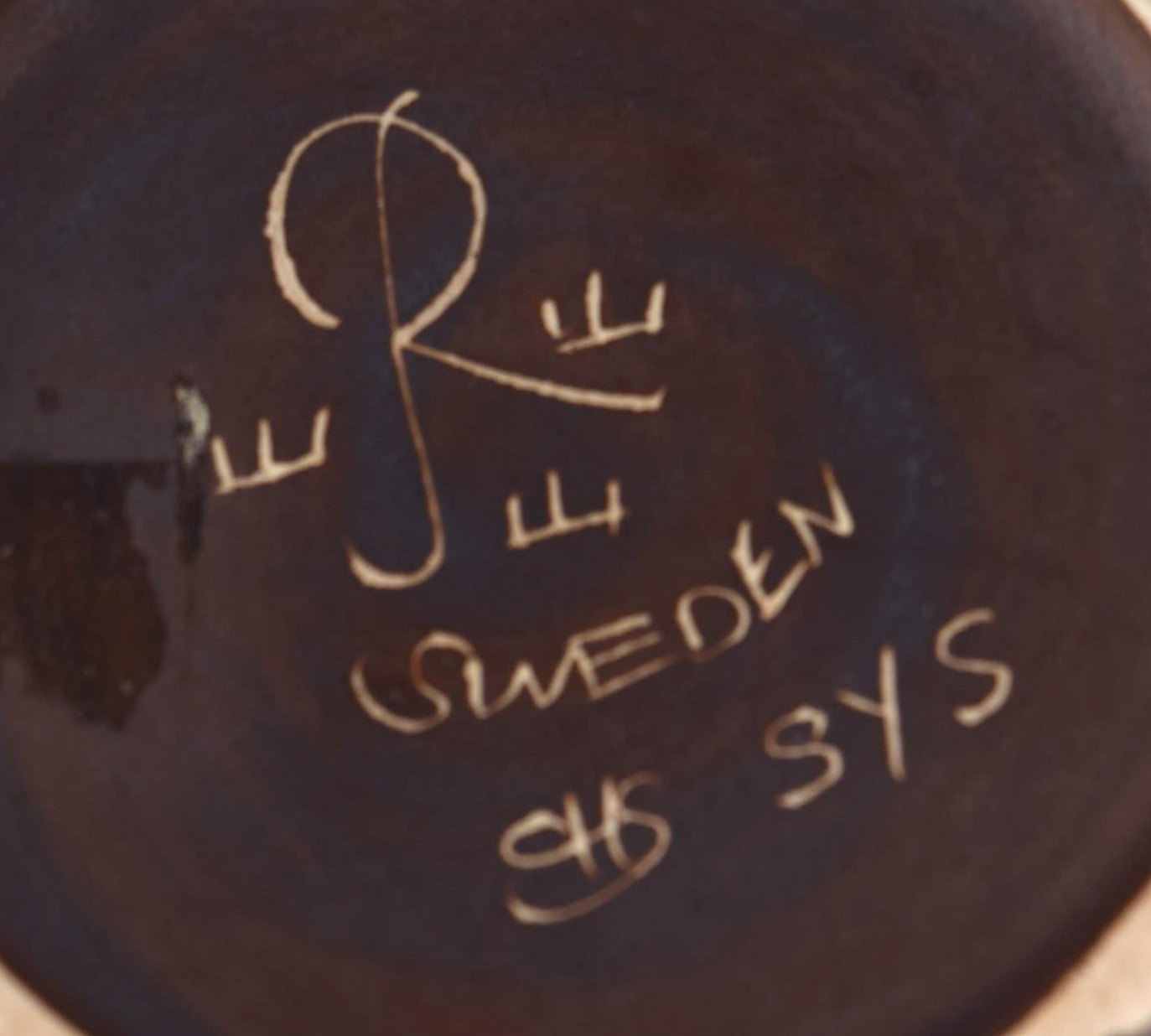 Carl-Harry Stålhane for Rörstrand. Vase med hank i glaseret stentøj. Smuk glasur i brune nuancer. 1960'erne. I flot stand. 1. Sortering Stemplet. Måler: 21 x 7,5 cm.