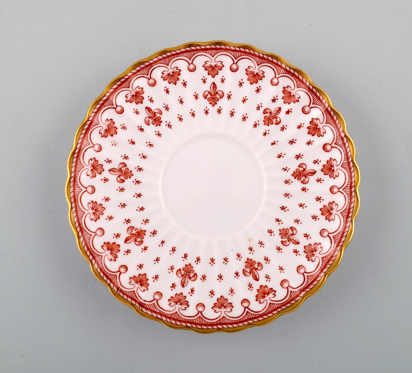 Spode, England. 10 kaffekopper med underkopper i håndmalet porcelæn med gulddekoration. 1920/30'erne.