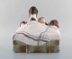 Lladro, Spain. Large figure in glazed porcelain. Four puppies in a basket. 1980's.