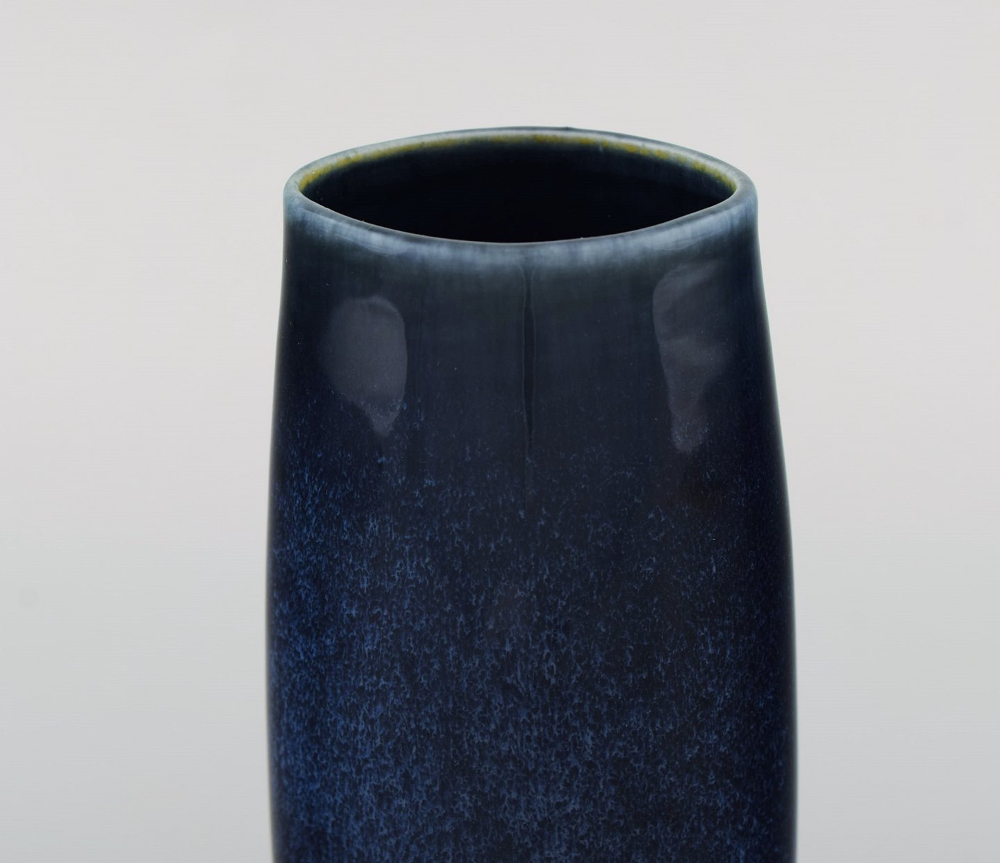 Gustavsberg, Sweden. Stylish vase in glazed ceramics. Beautiful blue mussel glaze. 1960's. Measures: 18 x 7 cm. In very good condition. Stamped.