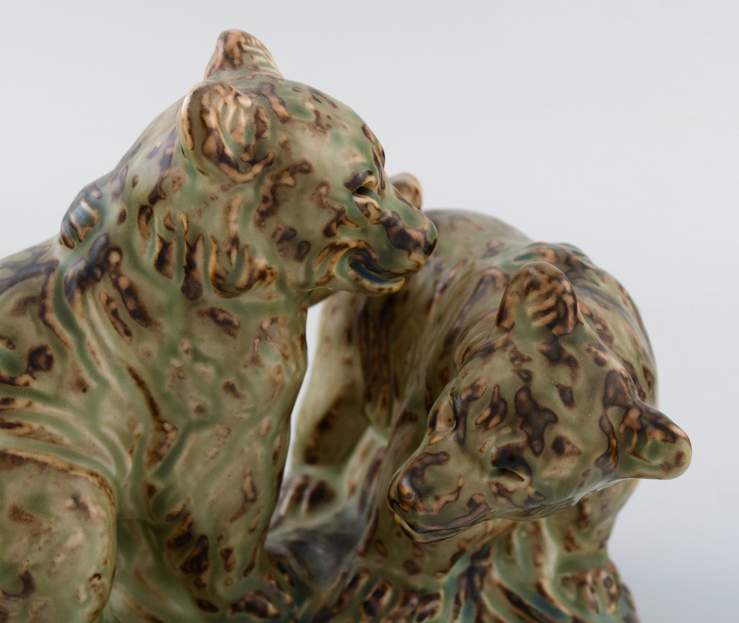 Knud Kyhn for Royal Copenhagen. Stentøjsfigur nr. 21915. Legende bjørneunger. Dateret 1965-74. Måler: 19 x 15 cm. 1. sortering. I flot stand. Signeret i monogram.