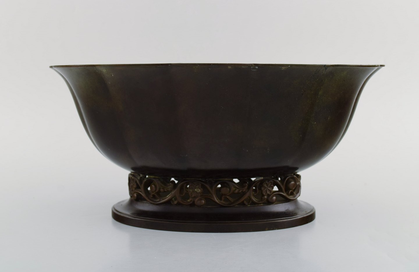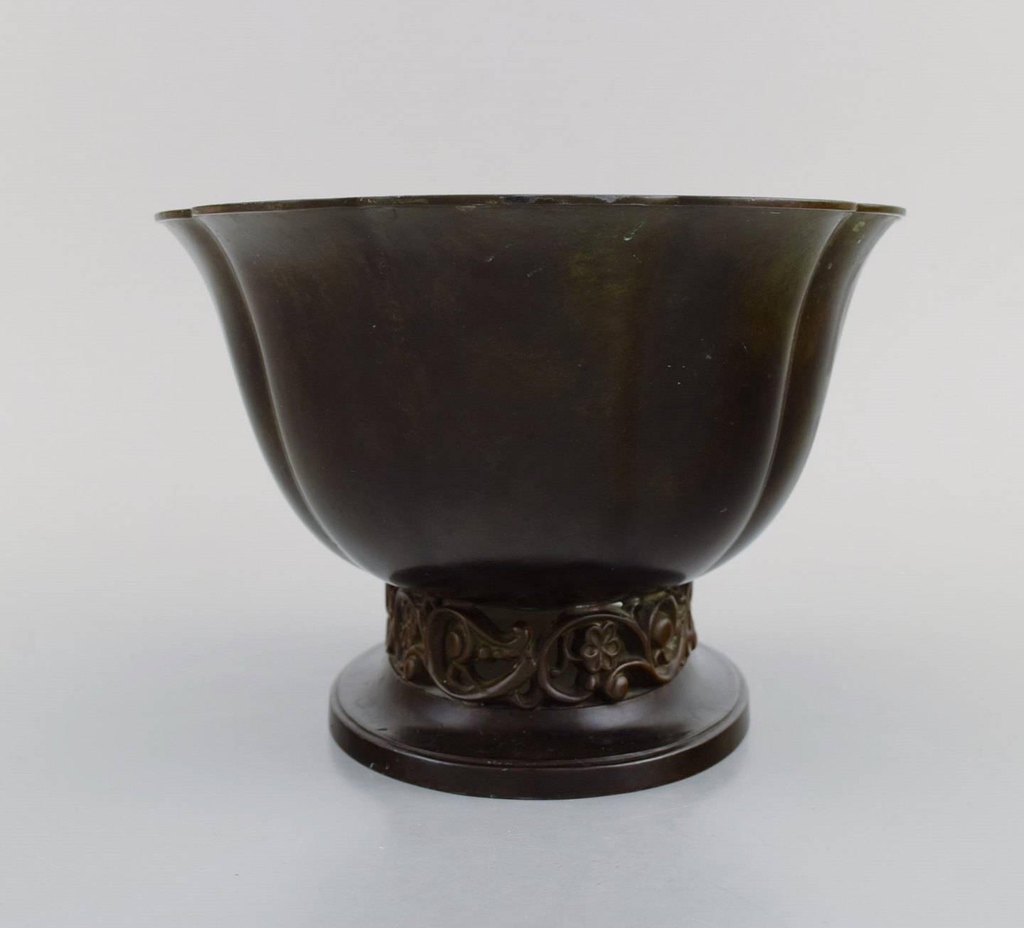 Just Andersen. Stor imponerende jardiniere/urtepotteskjuler i diskometal. 1930'erne.