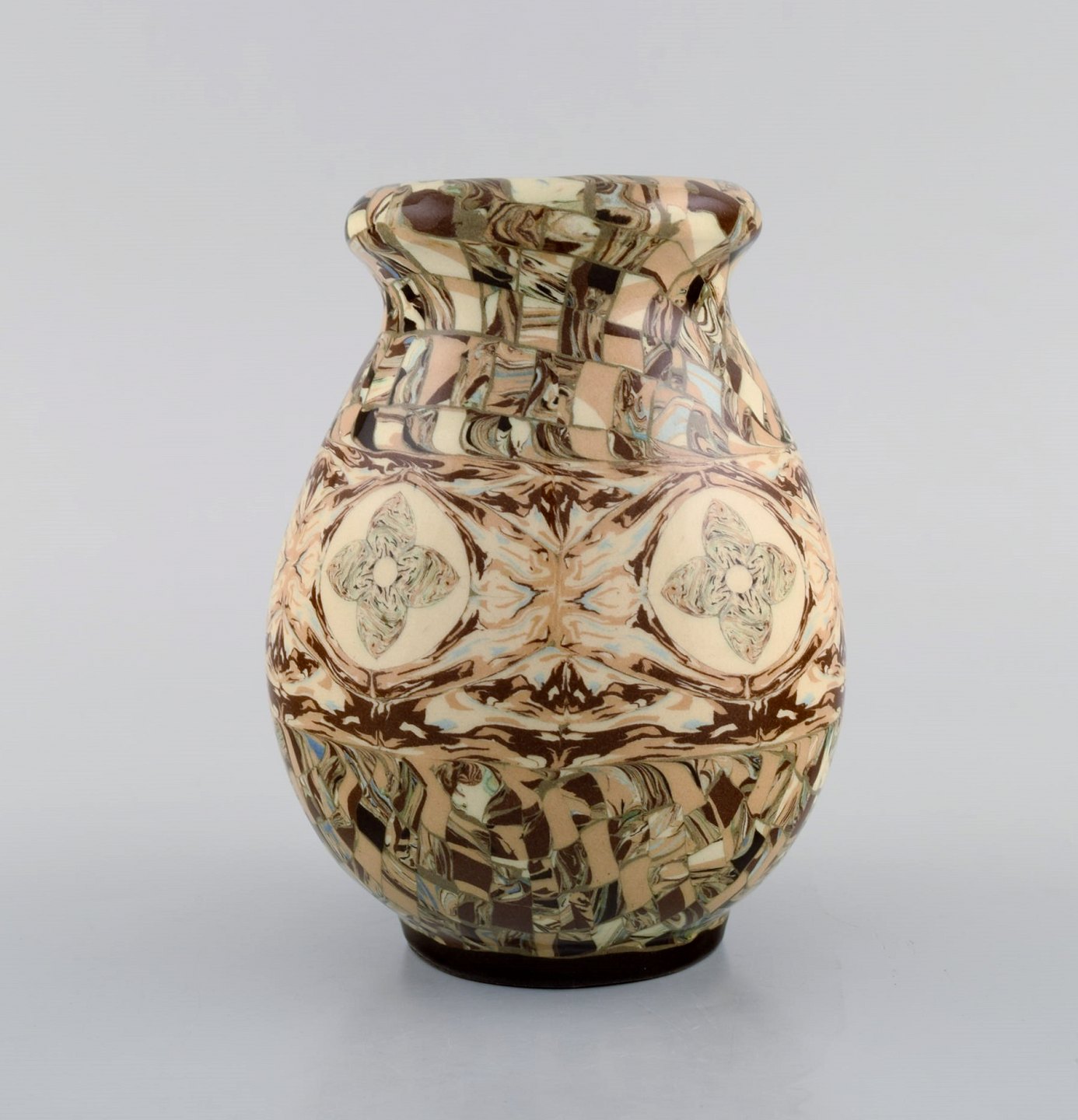 Jean Gerbino (1876-1966) for Vallauris. Vase i glaseret keramik med mosaik dekoration. Midt 1900-tallet.