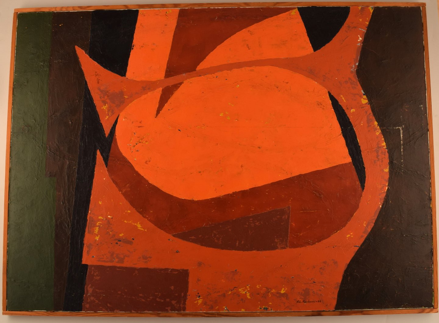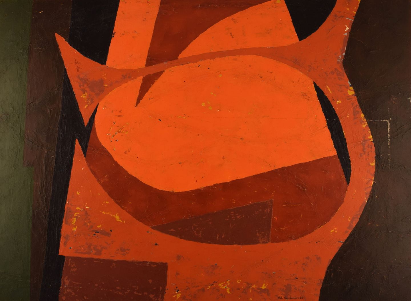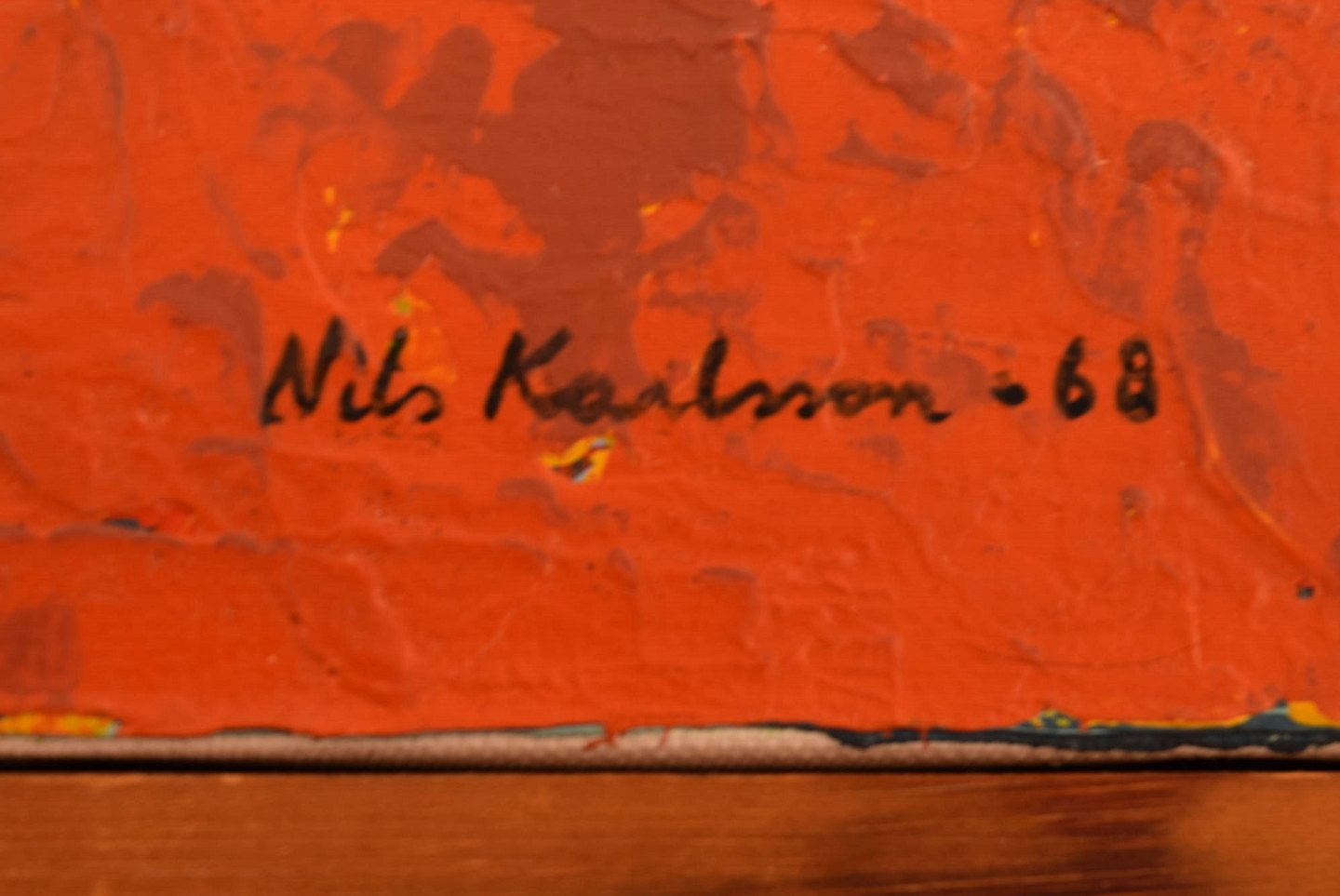 Nils Karlsson, Swedish artist. Oil on canvas. Abstract composition. Dated 1968. Canvas measures: 90 x 65 cm. The frame measures: 1 cm. Signed and dated. In good condition.