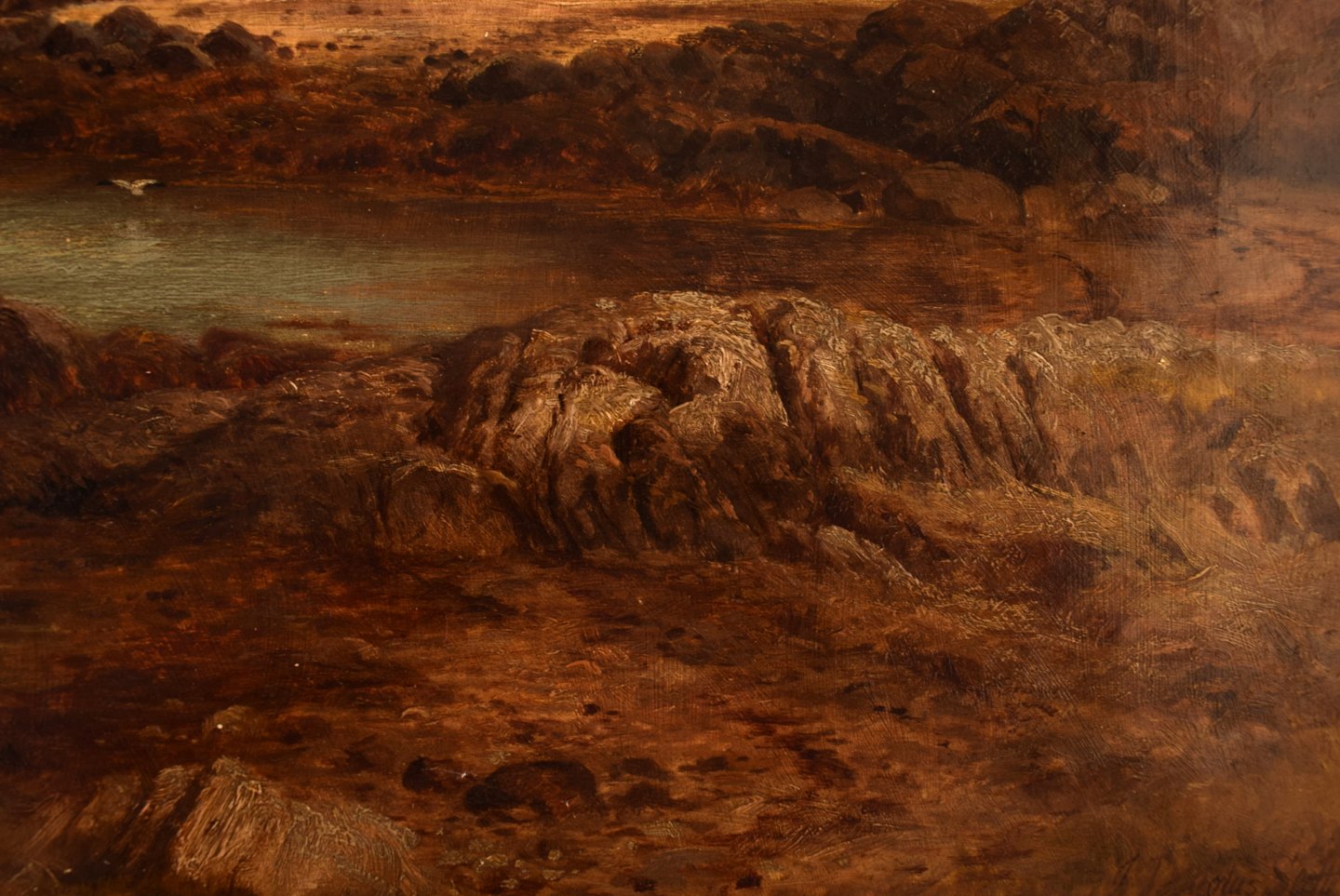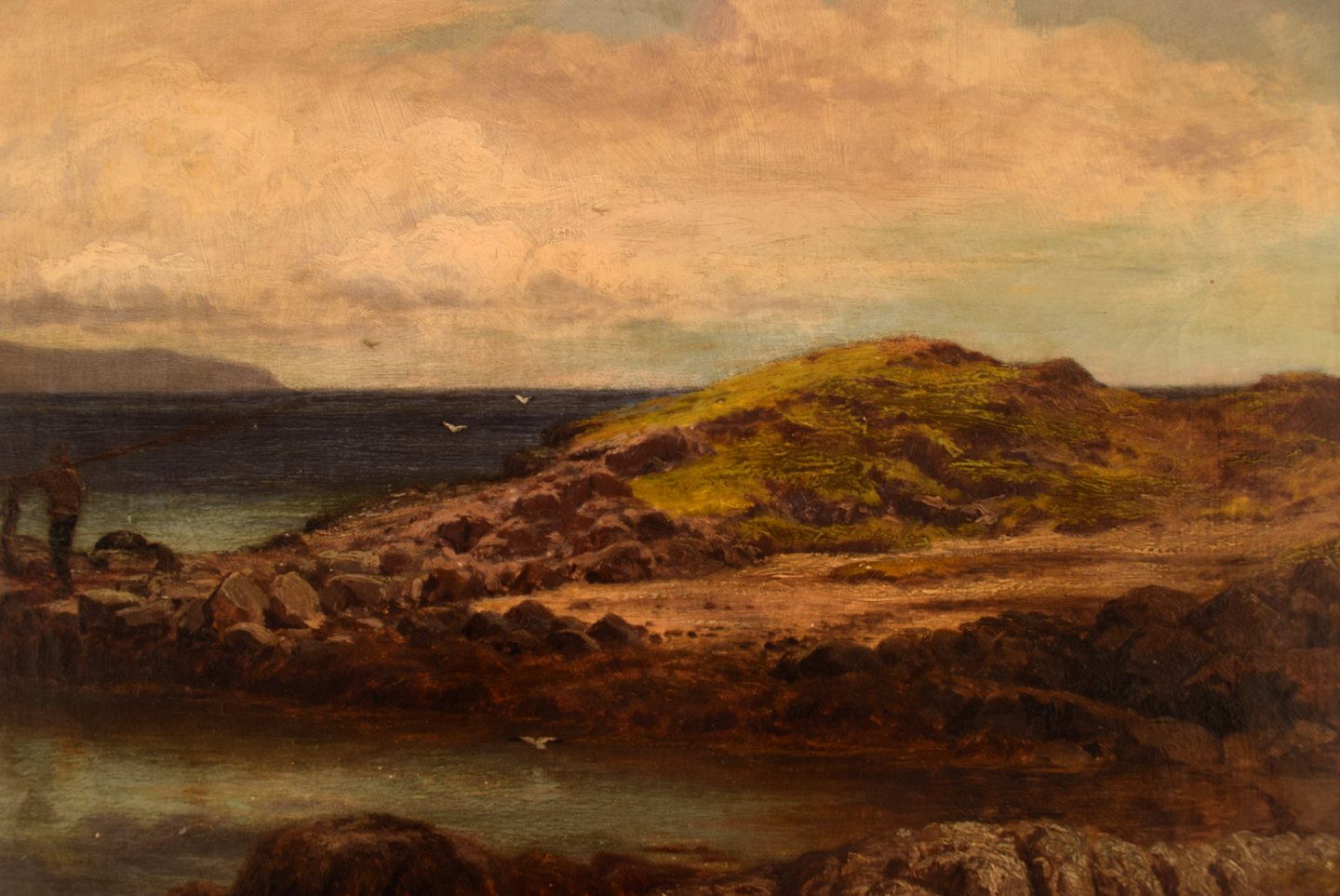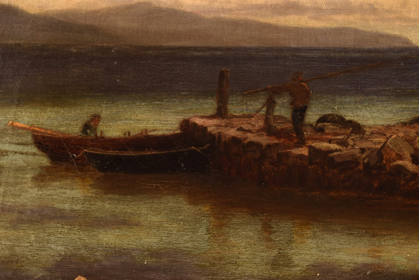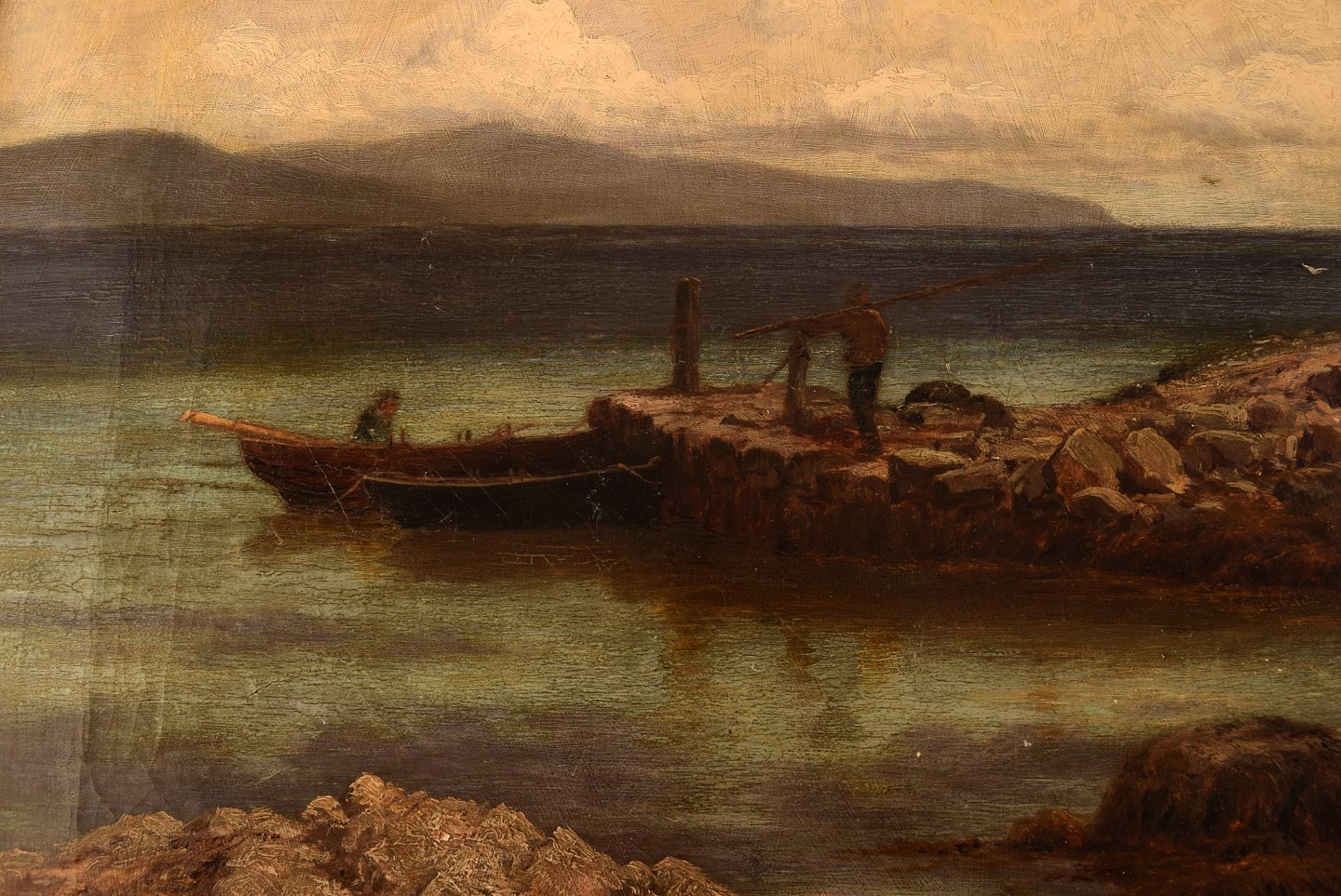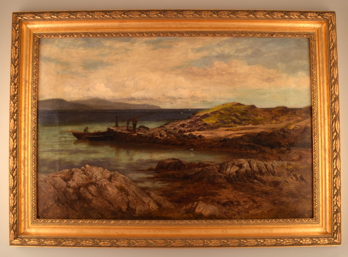 John Douglas Scott. Britisk maler. Olie på lærred. "The ferry rower, Isle of Gigha". Dateret 1877.