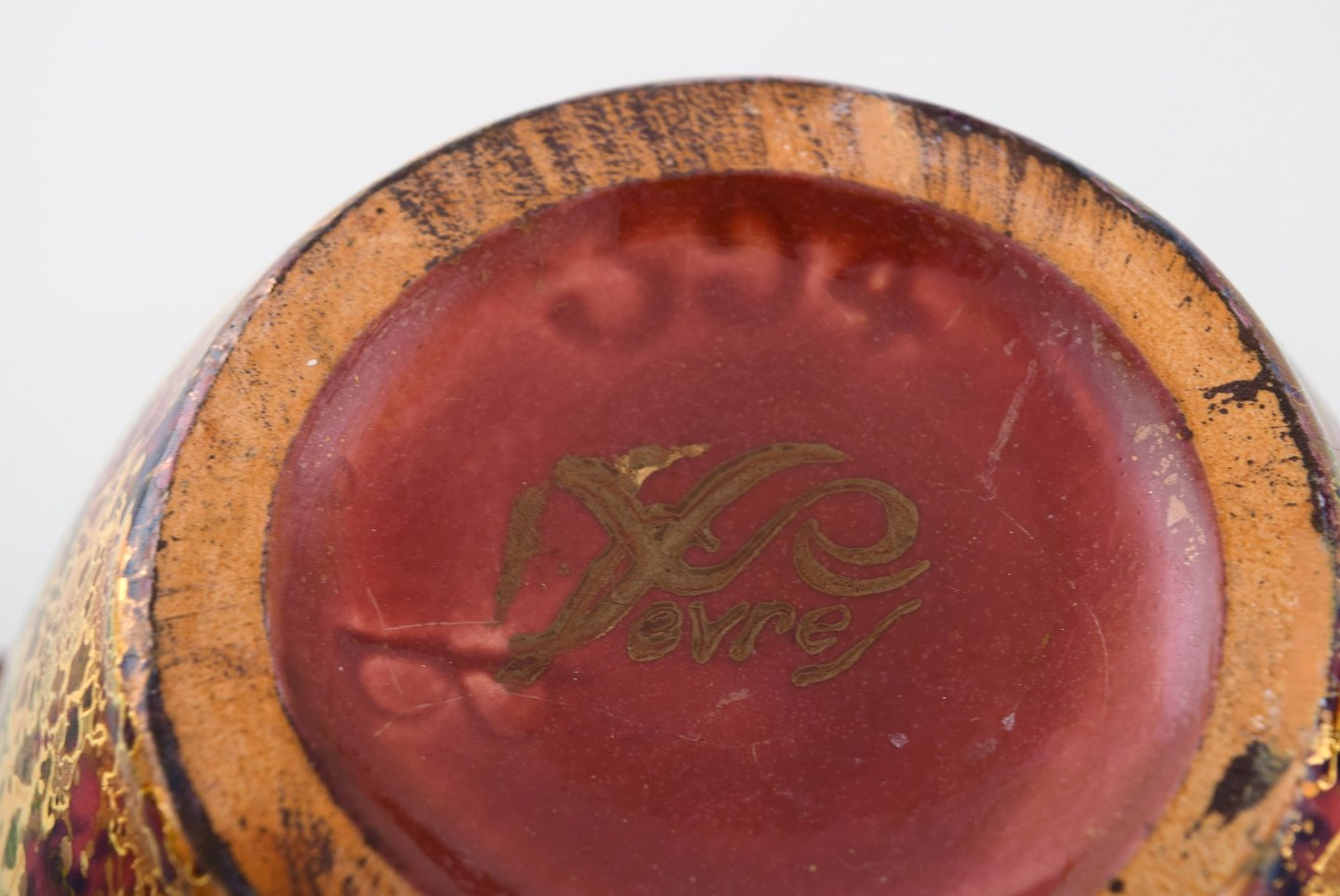 Sevres, Frankrig. Art deco vase i glaseret kermik. Smuk metallisk glasur i gyldne og rødbrune nuancer. 1930'erne.
