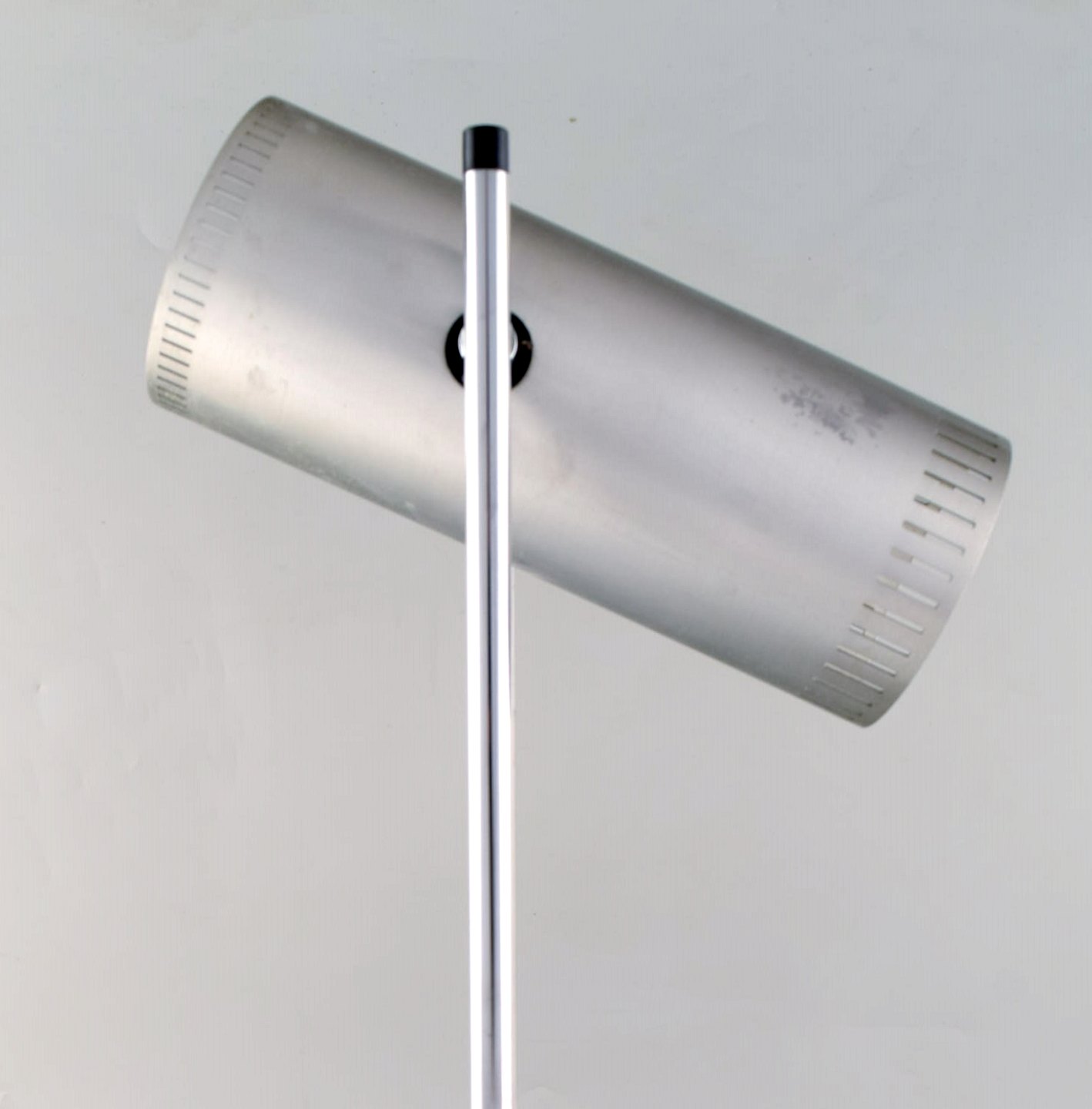 Jo Hammerborg for Fog & Mørup. Trombone bordlampe af forkromet og poleret stål med justerbar skærm, fodstykke af grålakeret metal. 1960/70'erne. Måler: 56 x 17,5 cm. I flot stand med brugspræg.