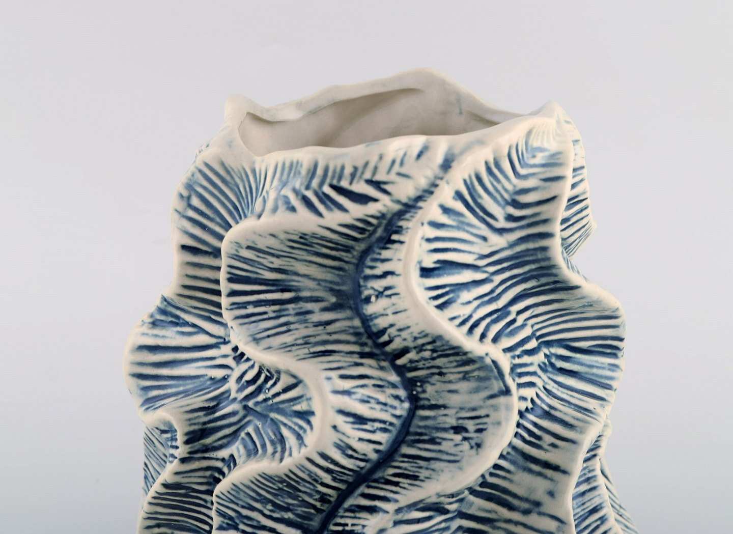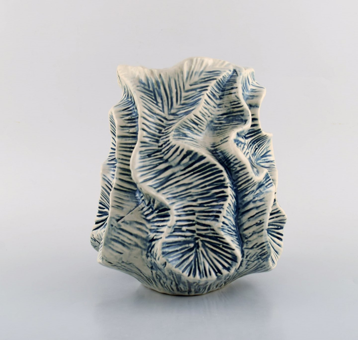 Skandinavisk keramiker. Koral formet vase i glaseret keramik. Sent 1900-tallet. Måler: 18,5 x 17 cm. I flot stand.