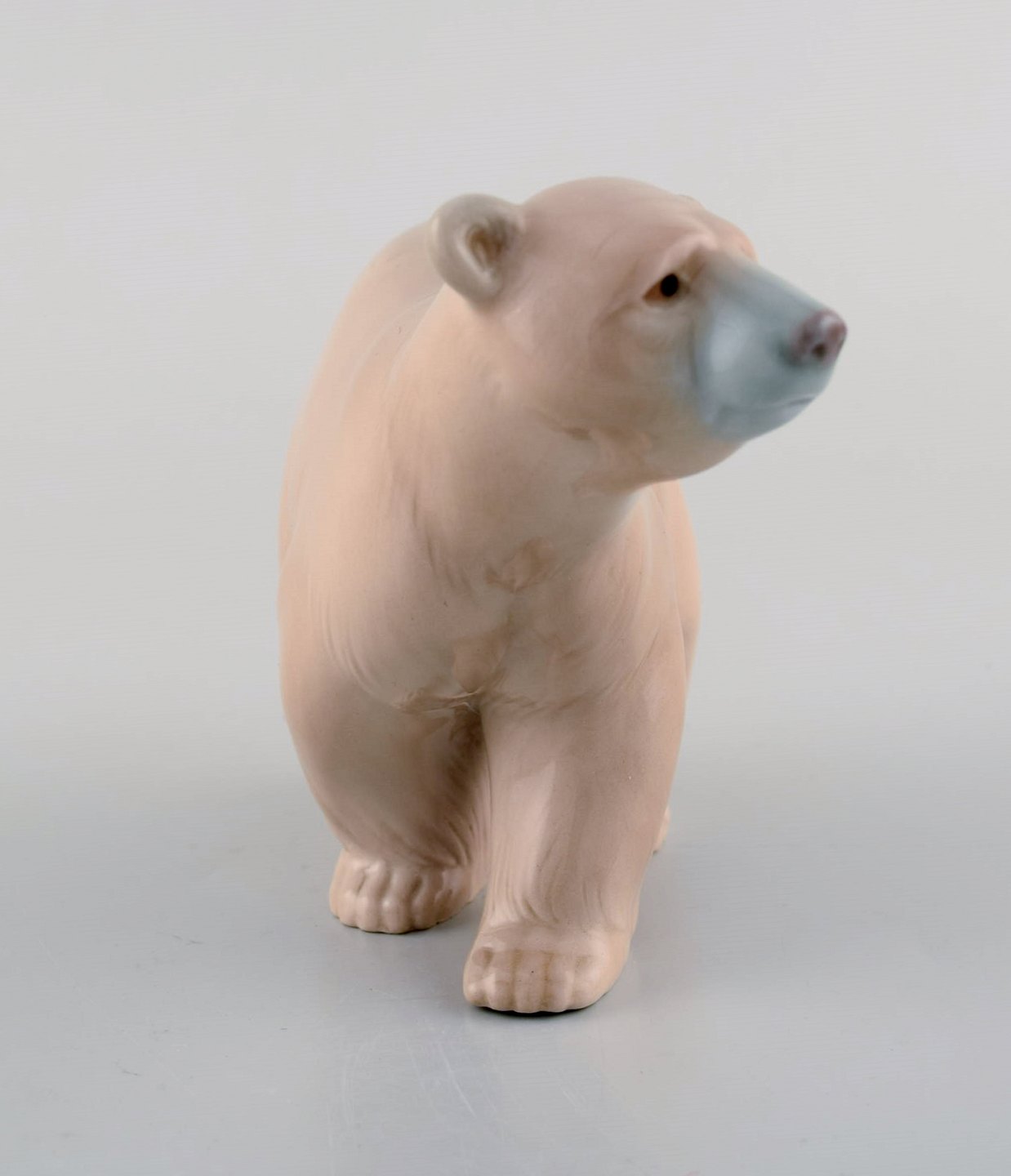 Lladro, Spanien. Fem porcelænsfigurer. Fire bjørne og en kalv. 1980/90'erne. Isbjørnen måler: 11,5 x 7 cm. Kalven måler: 17 x 6 cm. I flot stand. Stemplet.