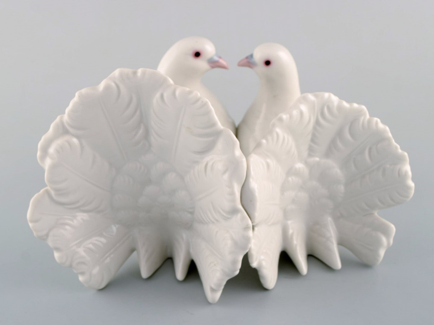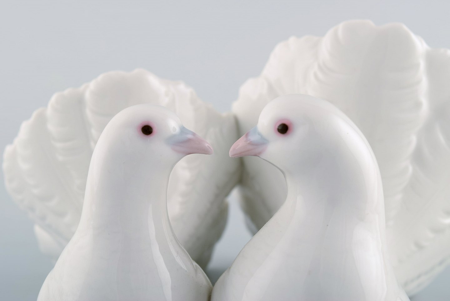 Lladro, Spain. Two porcelain figurines. Two pigeons and mandarin duck. 1980 / 90's. Largest measures: 20.5 x 12 cm. In very good condition. Stamped.