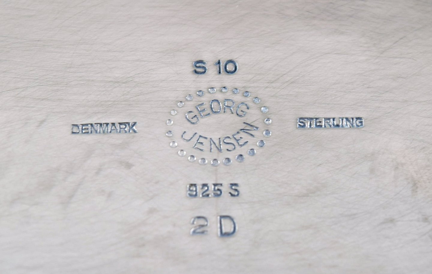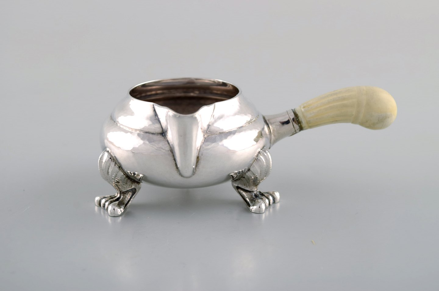 Sjældent Georg Jensen Magnolia mokkasæt i hammerslået sterlingsølv med hanke i elfenben.