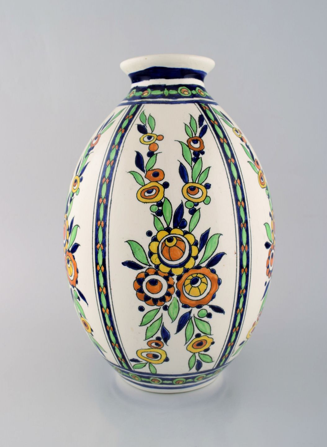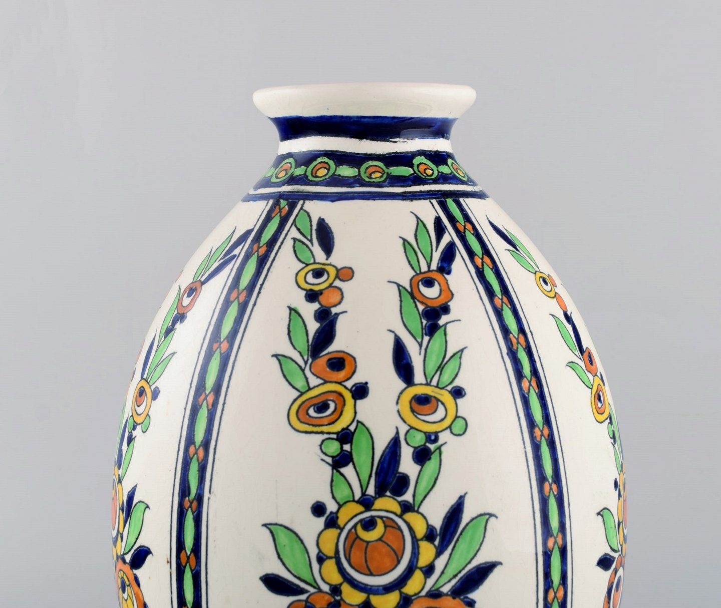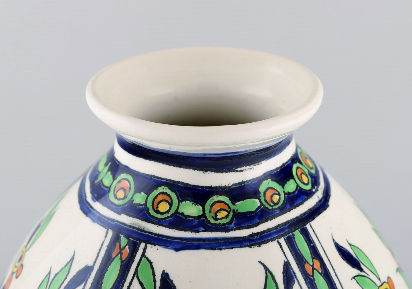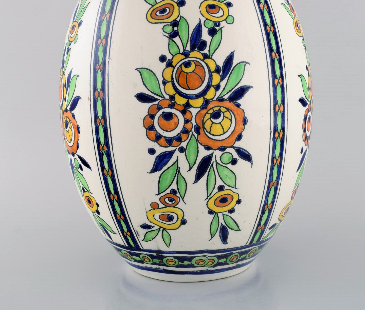 Charles Catteau (1880-1966) for Boch Freres Keramis, Belgien. Stor art deco keramikvase i cloisonné teknik. Håndmalet med blomster. 1920/30'erne. Måler: 31 x 20,5 cm. I flot stand. Stemplet.