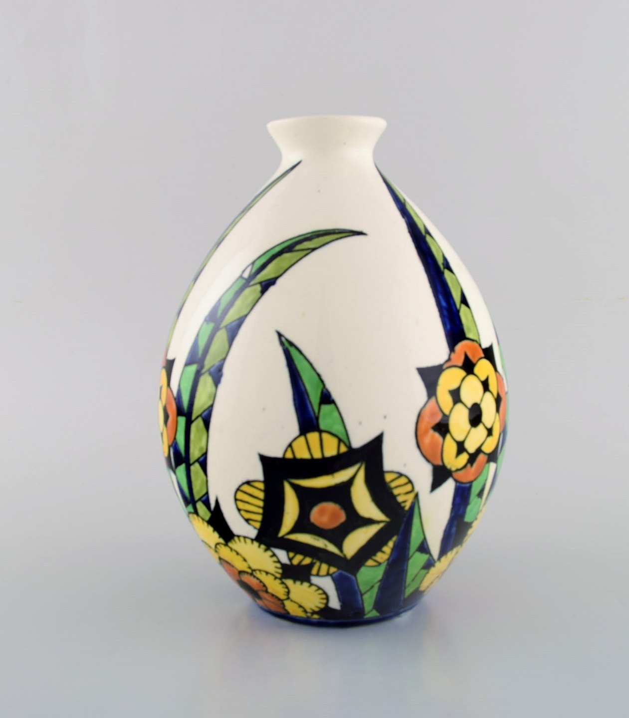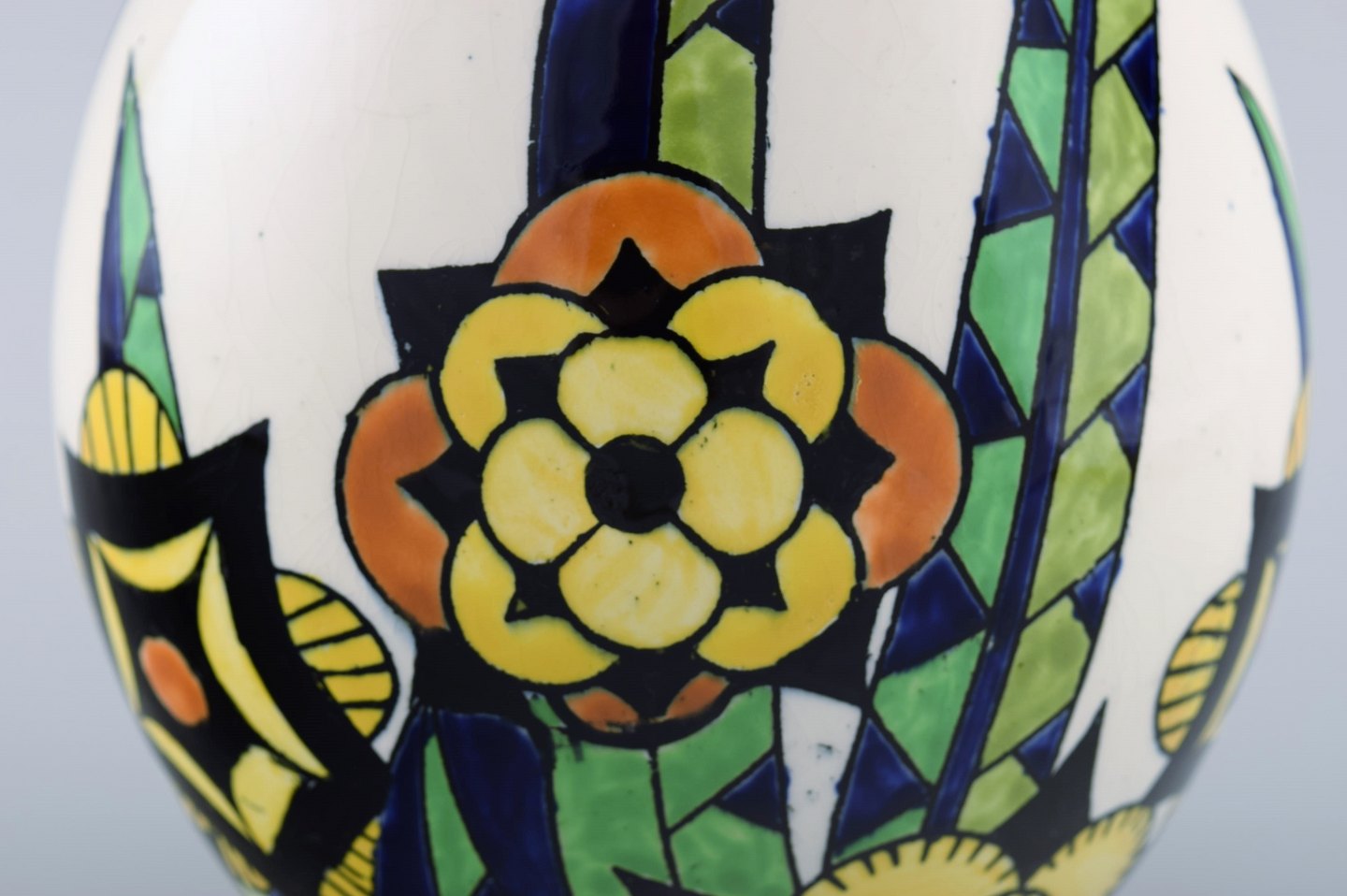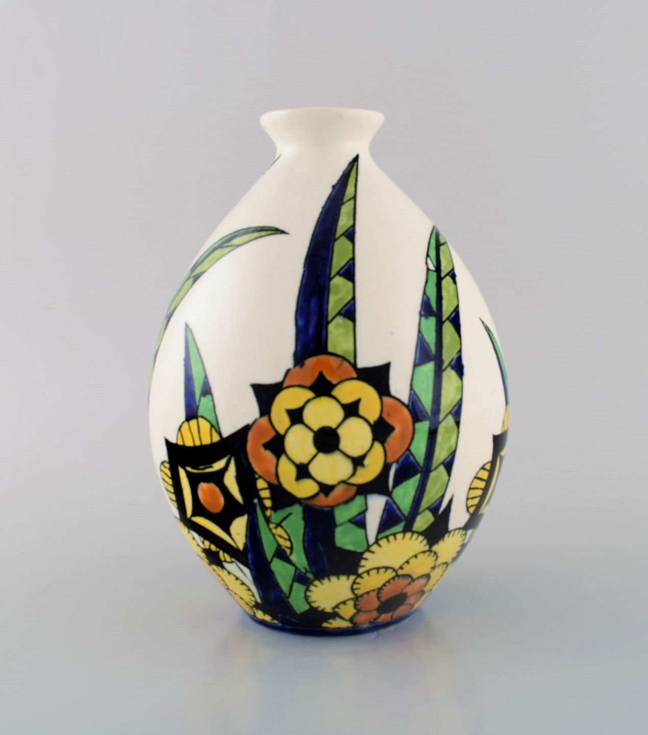 Charles Catteau (1880-1966) for Boch Freres Keramis, Belgien. Art deco keramikvase i cloisonné teknik. Håndmalet med blomster. 1920/30'erne.