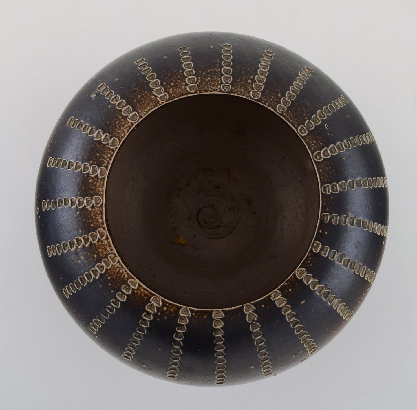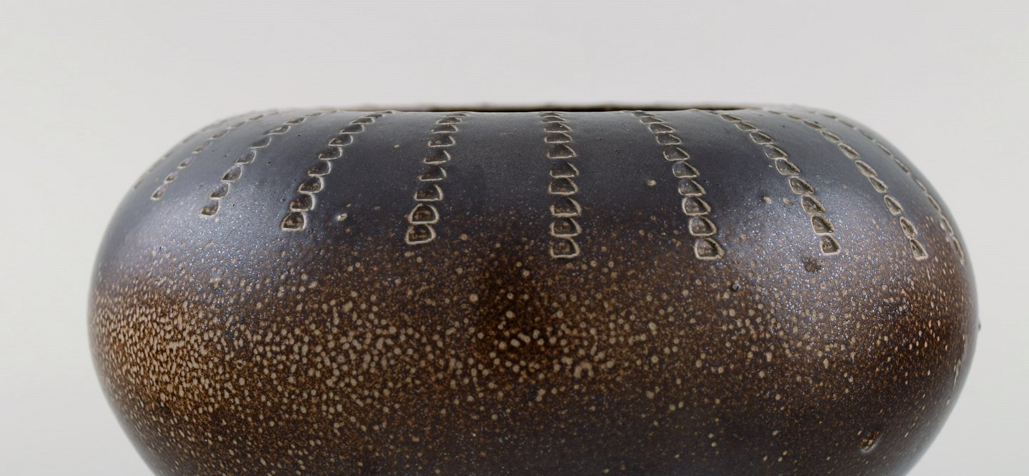 Europæisk studio keramiker. Unika skål i glaseret keramik med rillet design. 1970'erne. Måler: 19 x 11,5 cm. I flot stand. Signeret.