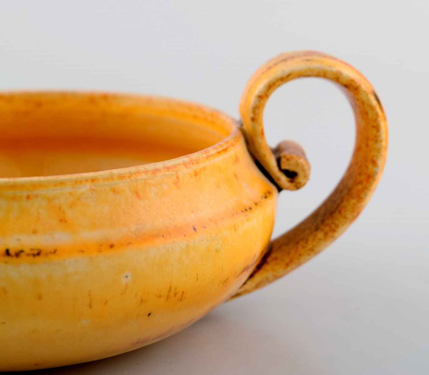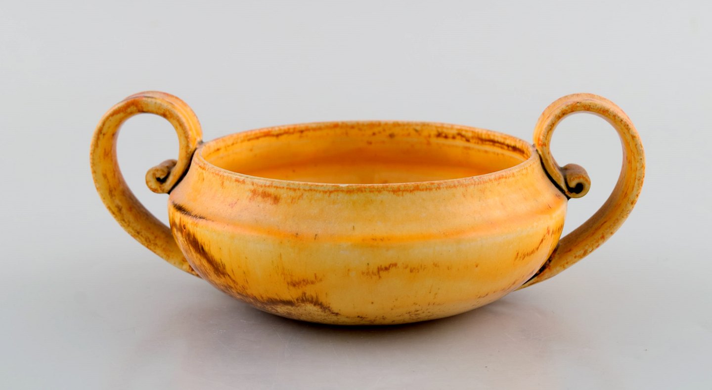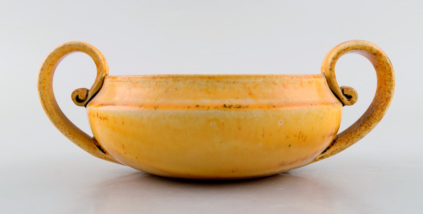 Kähler, HAK. Sukkerskål i glaseret stentøj. Smuk gul uranglasur. 1930/40'erne.