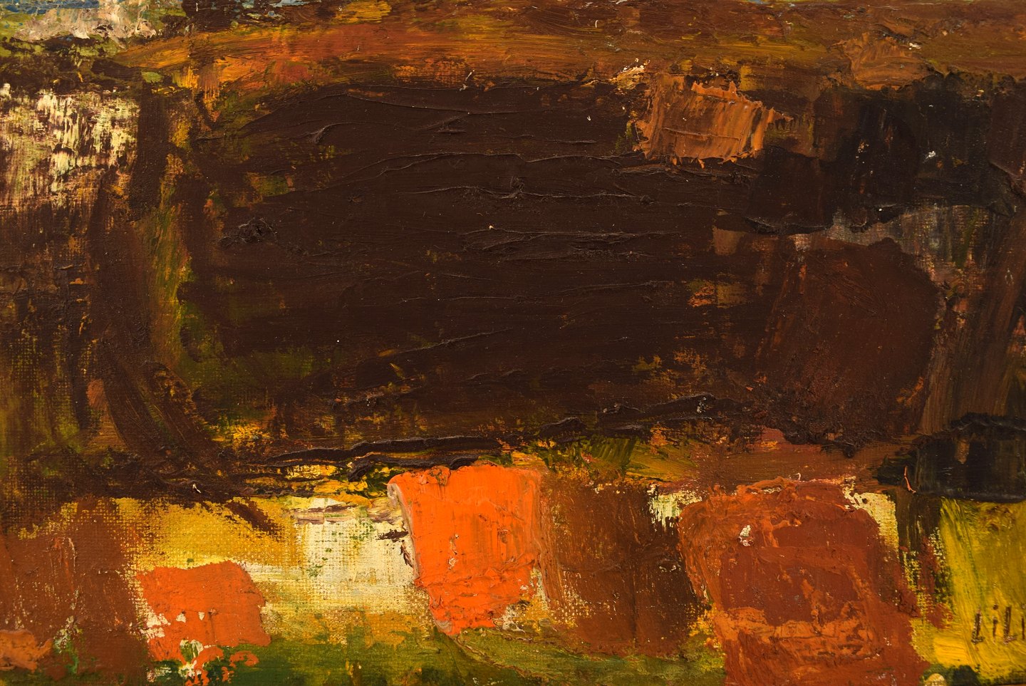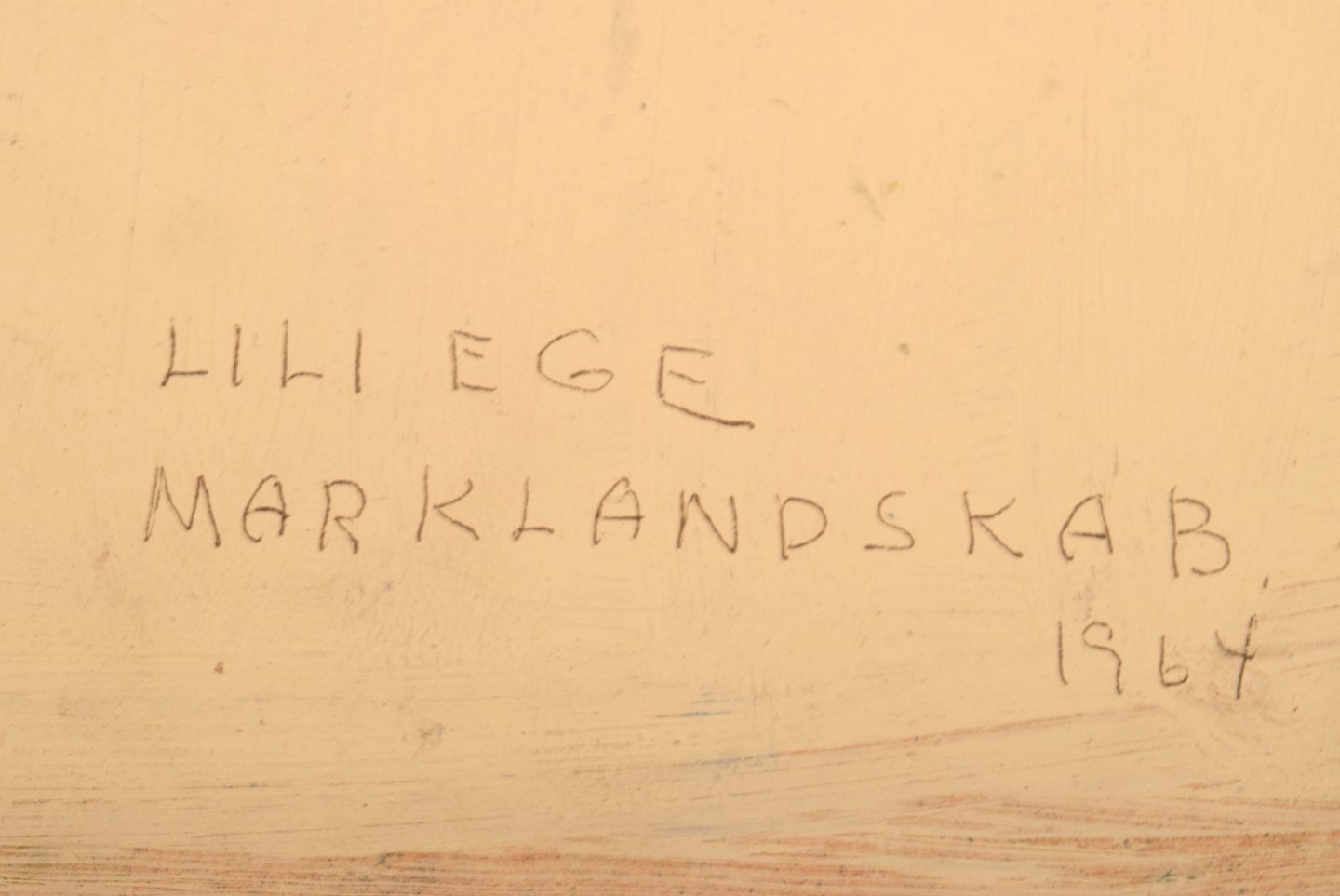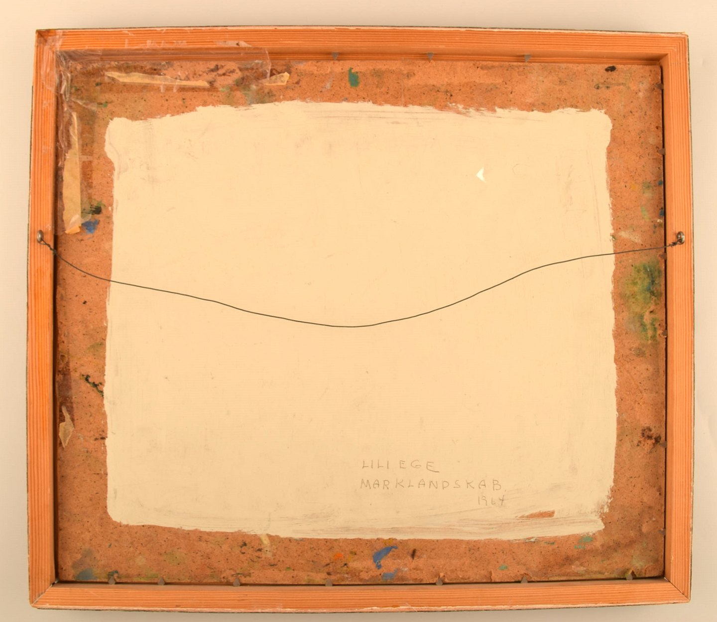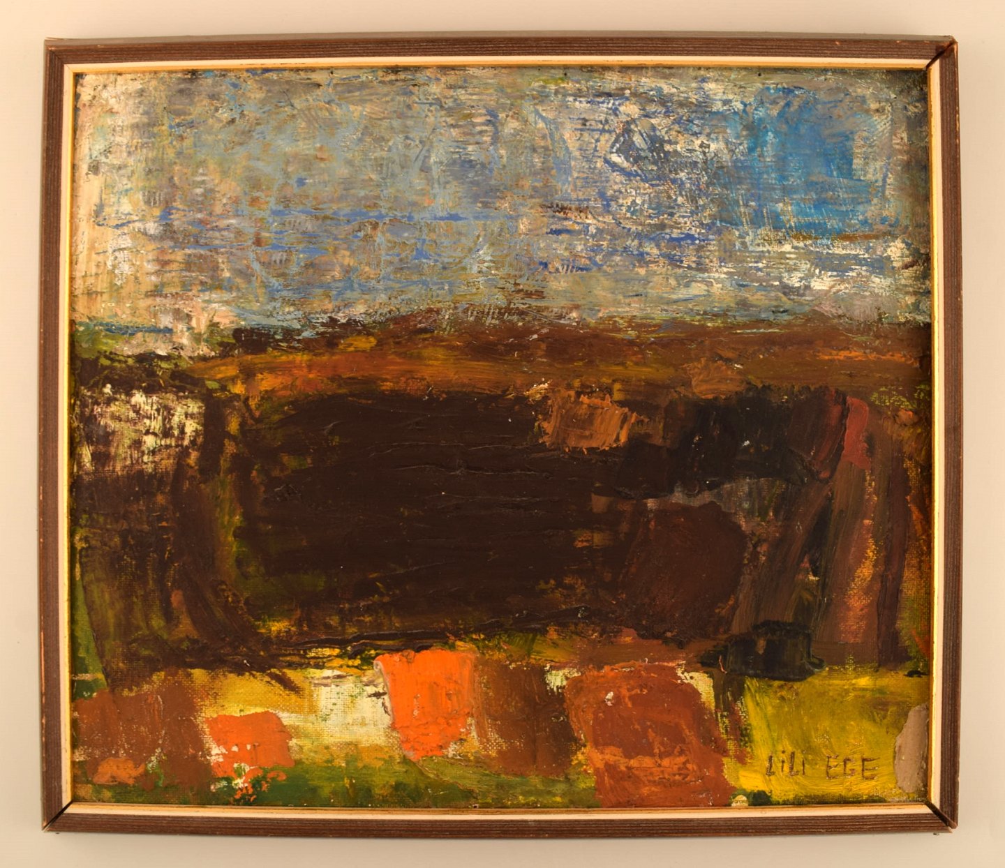 Lili Ege (1913-2004). Danish painter. Oil on board. Modernist landscape. Dated 1964. Signed. In very good condition. The board measures: 38,5 x 33 cm. The frame measures: 2 cm.