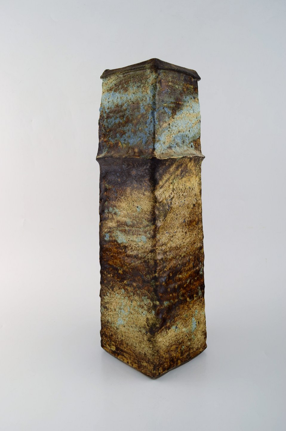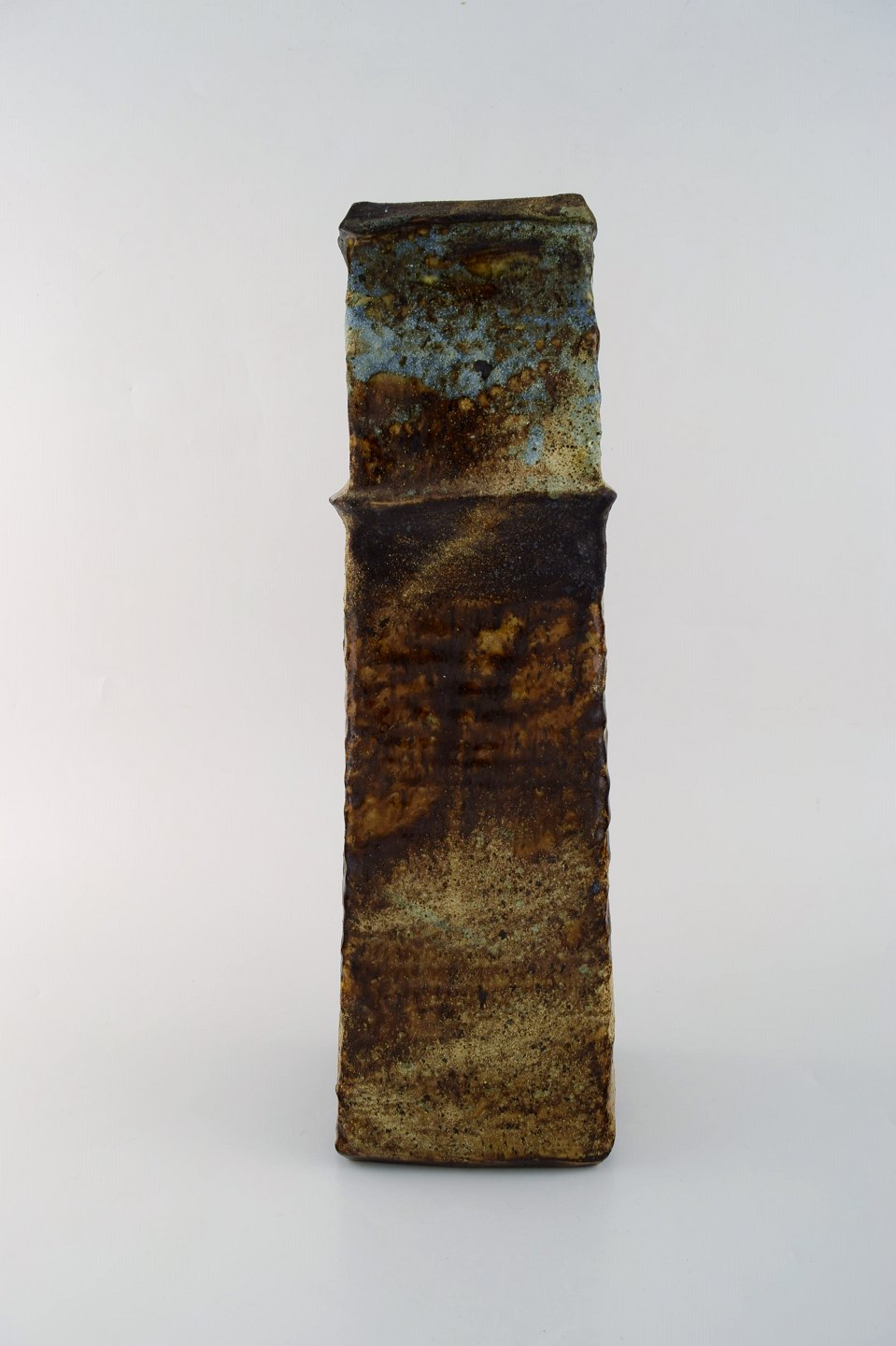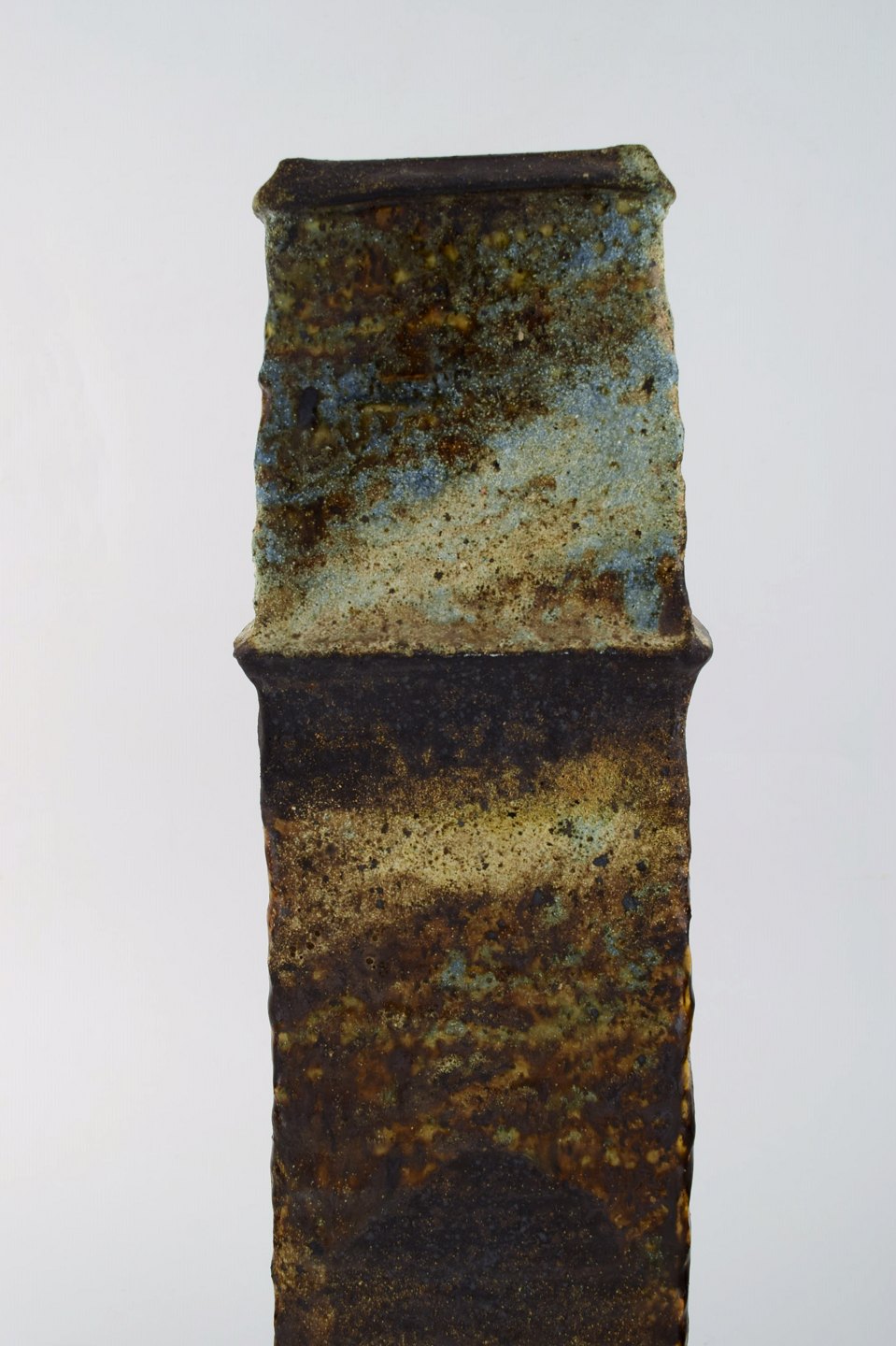 Michel Delmotte, Strassbourg. Stor vase i glaseret stentøj. Modernistisk design. Dateret 1941. Måler: 41 x 13 cm. I flot stand. Signeret og dateret.