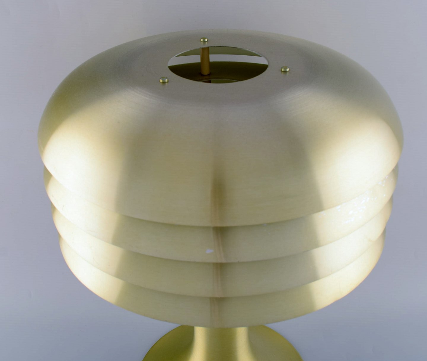 Hans Agne Jakobsson (1919-2009) for Markaryd, Sverige. Stor bordlampe i messingfarvet børstet aluminium. Model BN26. 1970'erne.
