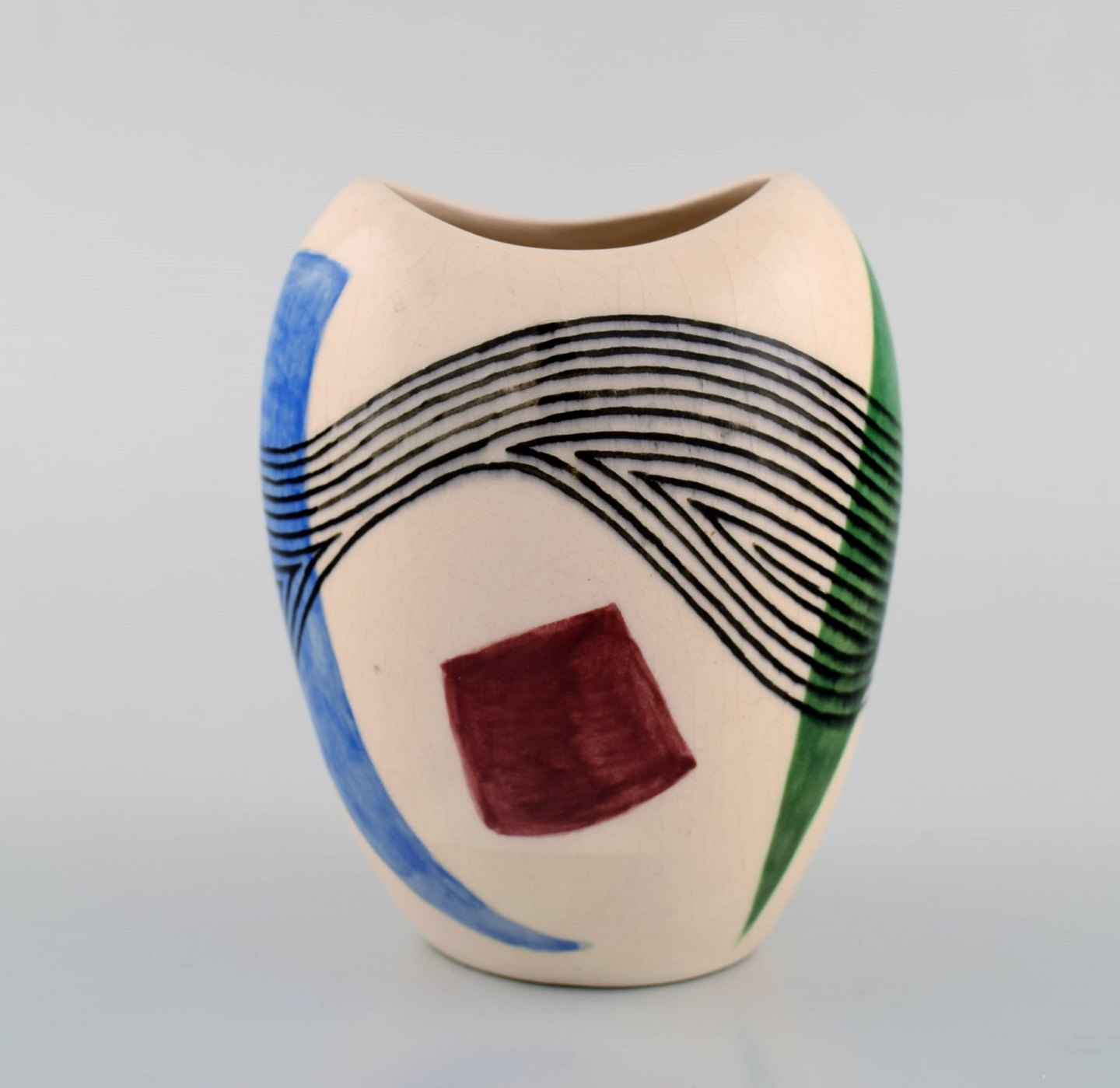 Europæisk studio keramiker. Unika vase i glaseret keramik. Dateret 1957.